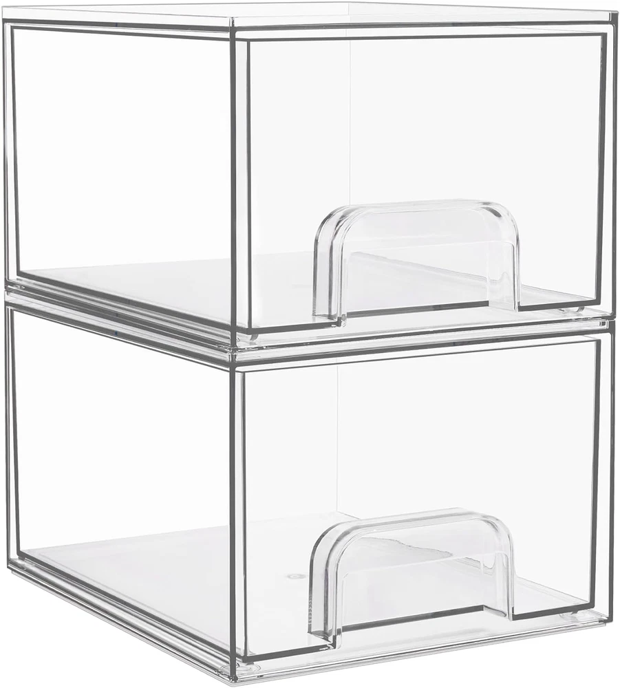 2 Pack Clear Stackable Storage Drawers, 4.4'' Tall Acrylic Bathroom Makeup Organ