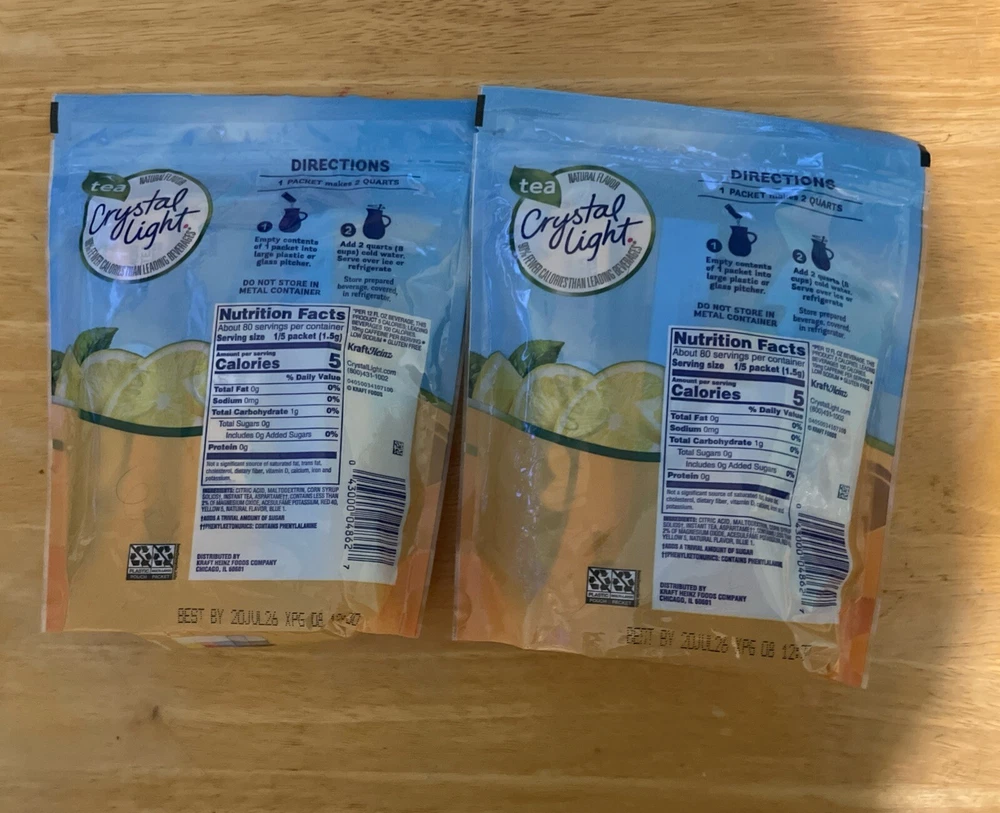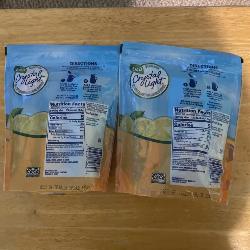 2 Pack- Crystal Light Natural Lemon Iced Tea, 16 packets 16 packs each - for a total of 32 packets all together - 2 packs of crystal light, natural lemon iced tea - New and sealed - Best offers are welcome - expiration date is July 20, 2026