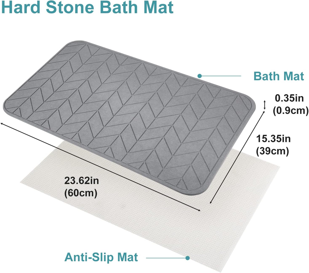 Store New Arrivals Add to Favorite View Feedback Contact Fast deliveries to the customer's home Quality customer service John Make the customers happy! 2 Pack Diatomaceous Earth Shower Mat, Stone Bath Mat, Nonslip Super Absorbent Fast-Drying Hard Bath Mat for Bathroom Shower Floor, 24 X 16 Inch, Grey Arrow Design Description 1.Please Note: this bath stone mat is Hard and Sleek, is not soft and fluffy, not like typical soft rug.You will be like stepping on a sturdy earth plate and a cool slate like STONE. 2.Strong Absorption&Quick Drying: Unlike traditional cotton and fabric bath mats, this Diatomite Earth Mat made up of all natural micro pores, can quickly soak up water, and gets dry in a few minutes, keeps your floor dry and clean. Stylish Japanese design that can be used as a home decor. 3.What You Get- 2PCS hard foot mats, with a rubber Anti-Slip Mat and sand paper. Size: 23.62 x 15.35 inch.For long-time use, please put the mat in a well-ventilated place to air dry regular. 4. Anti-Slip:Put the Rubber Anti-Slip Mat under this mat to prevent skidding. 5. Easy to Clean - Compared to traditional bath mat, no daily washing needed. When it get stains, just wash it with running water or wipe with a wet cloth, or use sandpaper gently grinding the surface when necessary, then air dry. Our Diatomaceous Earth bath mat will quickly refresh itself with excellent absorbent performance. 6. If the product is damaged, just contact us for free replacement Notice 1. The floor mat is made of diatom mud, it is hard rather than soft. Since this diatomite bath mat is hard, please avoid hitting the mat when you step on it. 2.If you feel micronized powders on the surface, it is not a quality issue but a normal phenomenon of the productive process. You can use damp cloth and lightly rub away. 3.Please put the mat in a well-ventilated place to air dry and do not expose it directly under sunlight for a long time. 4.Do not use detergents containing surfactants and dip into water. 5.Do not step on this bath mat with your shoes, otherwise the stains will be sucked. 6.Do not use on the uneven ground or soft ground and also not on the sharp object. Item model number 1 Color Dark Grey Product Dimensions 24"L x 16"W Material Stone Bath Mat Item Weight 9.53 pounds Shape Square Size 24" x 16" (Square) ABOUT US We offer the best prices around on high quality products. Our E-store includes media such as books, movies, music and games while offering electronics, toys, sporting apparel, clothing, tools, general home, garden items and more. SHIPPING We are always working hard to ensure your package arrives as soon as possible. Please understand that some factors like weather, high postal traffic, and the performance of shipping companies are outside of our control. We offer free shipping to the lower 48 states and ship within 2 business days of payment, usually sooner. We do not accept P.O. Boxes. Please provide a physical address. For shipping outside of the continental USA, we only use eBay's Global Shipping Program. The item is shipped to KY and then sent to the rest of the world. International customers are responsible for all duties and taxes. Continue to 'check out' to calculate costs for shipping the item to your country. Messages regarding eBay's Global Shipping Program MUST be directed at eBay EXCLUSIVELY. RETURNS We offer a 30-Day Return Policy on items in which you are not completely satisfied with. You have the option of a full-refund or an exchange of the item. No returns are available on items shipped outside of the USA PAYMENT We accept PayPal. CONTACT US This page content is yet to come Please ad us to your favorite seller and visit again later Thank You CUSTOMER SATISFACTION We try our very best to make sure every customer is completely satisfied. If there's a problem, message us! We're happy to help. WE ACCEPT
