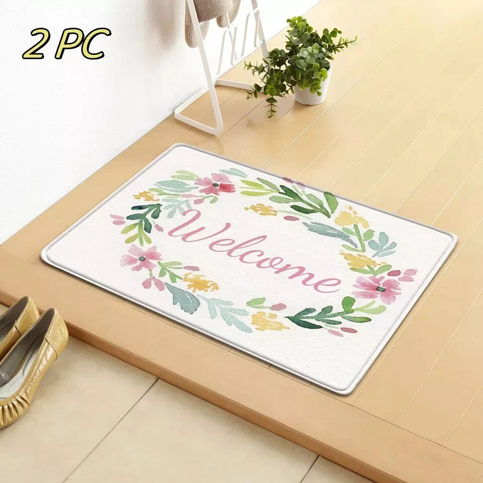 2 Pack Door Floor Mat Indoor Outdoor Rug Entryway with Rubber Backing Washable