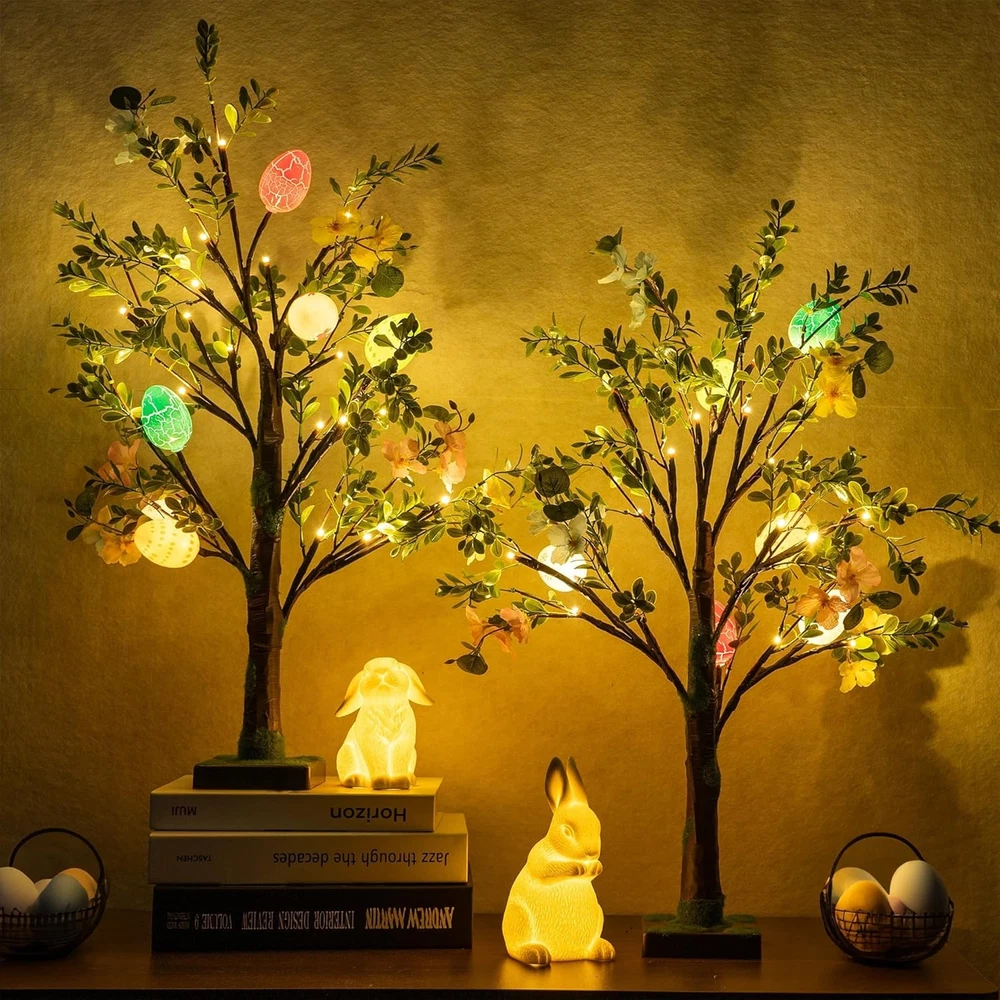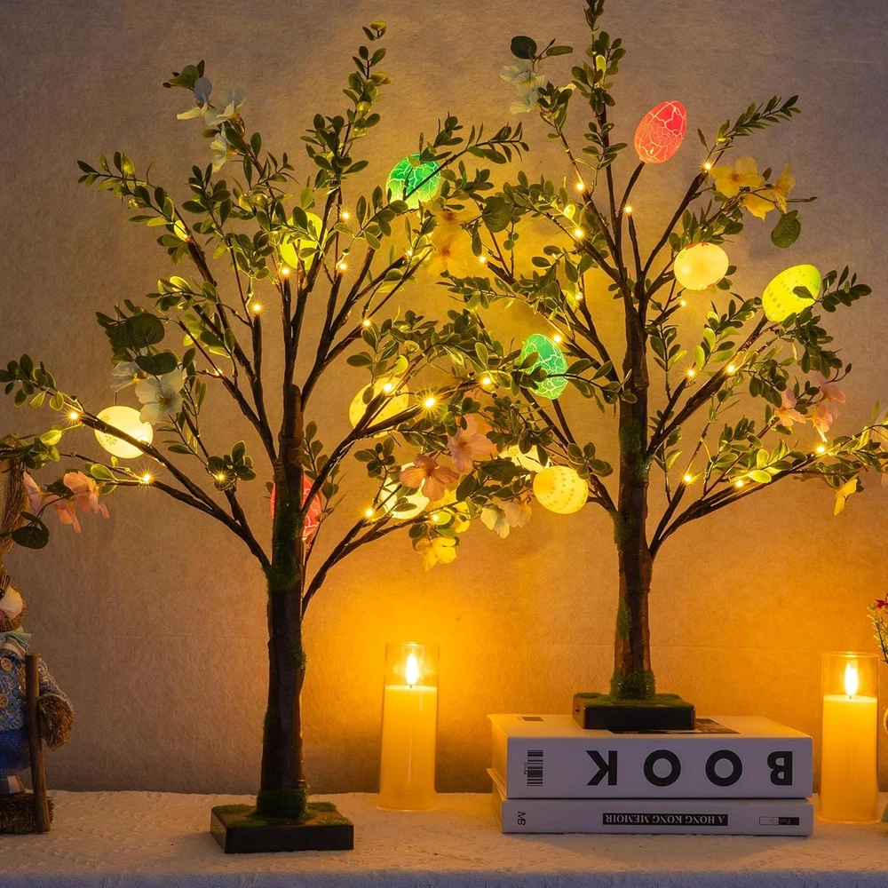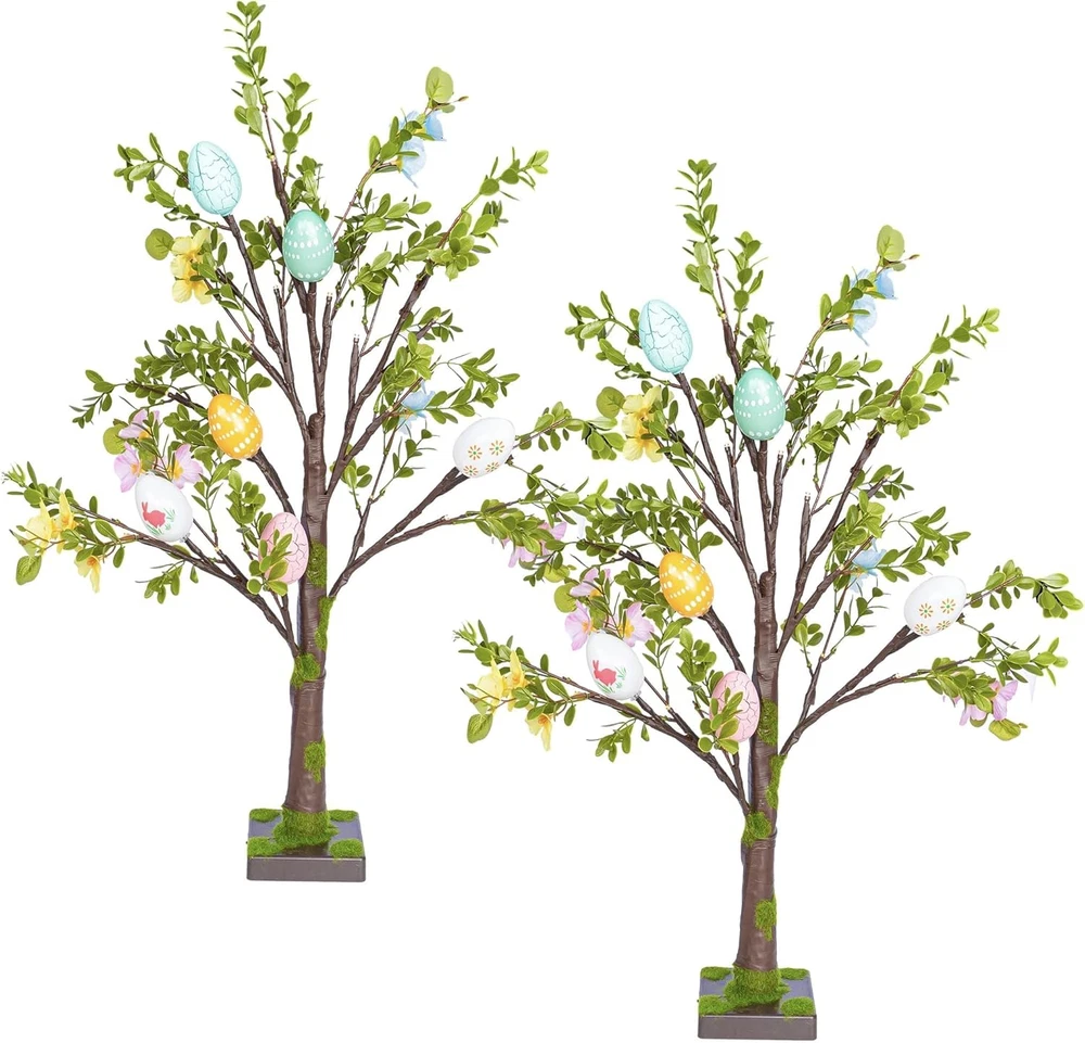 Store New Arrivals Add to Favorite View Feedback Contact Fast deliveries to the customer's home Quality customer service John Make the customers happy! 2 Pack Easter Lighted Tree Decoration, 26 Inch 24 LED Battery Operated Pre-Lit Egg Tree with Timer, Easter Artificial Tree for Indoor Spring Party Home Tabletop Easter Decor Description Easter Tree Decor: Brighten up your Easter with this pre-lit Easter trees! The 26.8 inch trees feature colorful eggs and green artificial leaves. The vibrant colors and intricate designs of the eggs add a festive and cheerful touch to your Easter decorations. Battery Powered: This lighted Easter tree is powered by 3 AA batteries (not included) and features a switch located on the side of the base. Without the need for electrical outlets, making it perfect for tabletop displays or any indoor setting. Bright Lights with Timer: Each Easter tree comes with 24 warm white LED lights, creating a cozy and inviting atmosphere. Equipped with a convenient timer function (6 hours ON / 18 hours OFF), eliminate the hassle of turning them on and off manually every day. Realistic Artificial Leaves: The trees feature realistic artificial leaves that mimic the look of a fresh spring tree. The durable materials ensure that the trees will remain in excellent condition for years to come, allowing you to reuse them for future Easter celebrations. Perfect for Easter Parties: Ideal for enhancing the ambiance of your home during Easter or any spring-themed party. The trees suitable for tabletops, mantels, or any small space, adding a delightful touch of Easter charm to your home decor. Product Description Easter Tree Decor Brighten up your Easter with this pre-lit Easter trees! Battery Powered This lighted Easter tree is powered by 3 AA batteries (not included) Timer Equipped with a convenient timer function (6 hours ON / 18 hours OFF). Realistic Artificial Leaves The trees feature realistic artificial leaves that mimic the look of a fresh spring tree. 1 Easter Tree Decor 2 Battery Powered 3 Timer 4 Artificial Leaves Item model number Colorful Egg Tree Item Package Quantity 1 Product Dimensions 3"D x 5"W x 4"H Number of Items 1 Built-in Light Yes Color Multicolor Material Polyvinyl Chloride Item Weight 1.94 pounds Recommended Uses For Product Indoor Seasons Spring Included Components Egg, Tree Special Feature Prelit Light Color Warm White Occasion Easter ABOUT US We offer the best prices around on high quality products. Our E-store includes media such as books, movies, music and games while offering electronics, toys, sporting apparel, clothing, tools, general home, garden items and more. SHIPPING We are always working hard to ensure your package arrives as soon as possible. Please understand that some factors like weather, high postal traffic, and the performance of shipping companies are outside of our control. We offer free shipping to the lower 48 states and ship within 2 business days of payment, usually sooner. We do not accept P.O. Boxes. Please provide a physical address. For shipping outside of the continental USA, we only use eBay's Global Shipping Program. The item is shipped to KY and then sent to the rest of the world. International customers are responsible for all duties and taxes. Continue to 'check out' to calculate costs for shipping the item to your country. Messages regarding eBay's Global Shipping Program MUST be directed at eBay EXCLUSIVELY. RETURNS We offer a 30-Day Return Policy on items in which you are not completely satisfied with. You have the option of a full-refund or an exchange of the item. No returns are available on items shipped outside of the USA PAYMENT We accept PayPal. CONTACT US This page content is yet to come Please ad us to your favorite seller and visit again later Thank You CUSTOMER SATISFACTION We try our very best to make sure every customer is completely satisfied. If there's a problem, message us! We're happy to help. WE ACCEPT