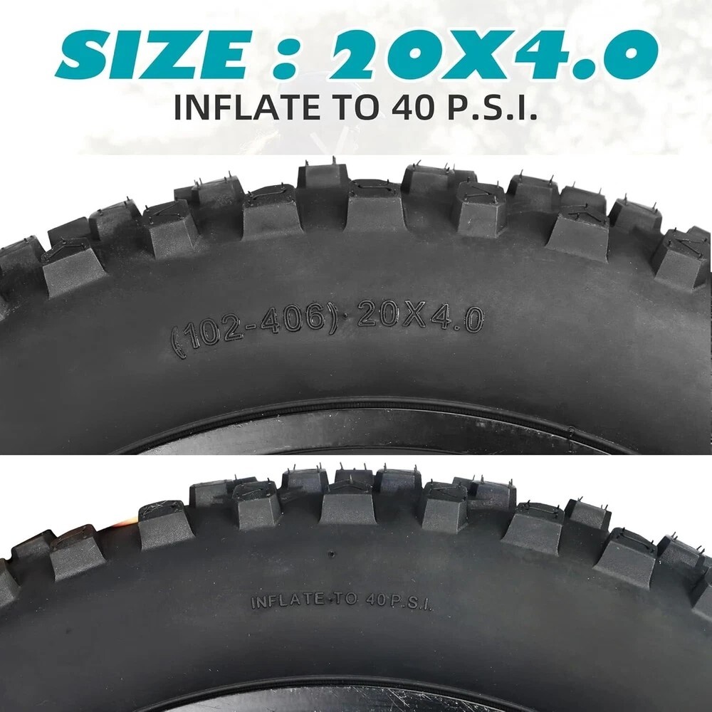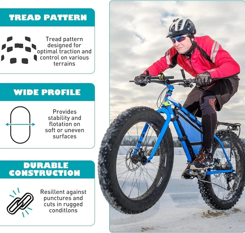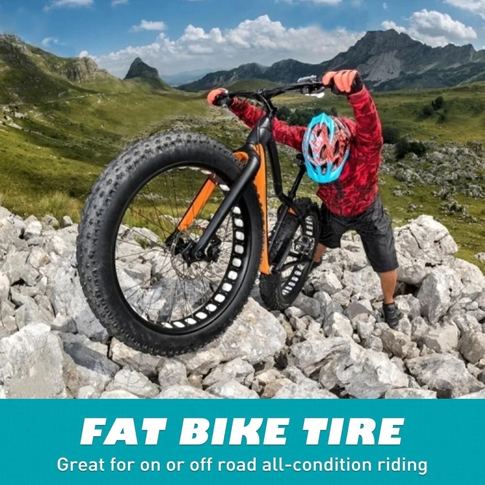About this item • EXTREME DURABILITY:This 20x4.0 fat tire is designed for rolling speed and minimal drag on hard-pack or paved terrain.Navigate every riding surface with ease and confidence, ensuring a robust and reliable ride across all terrains. • PEERLESS ADAPTABILITY: versatility not only for mountain bikes but also electric bicycles, snowmobiles, and various other bike types. • EASY INSTALLTION: Easy to mount on the rim. We suggest to replace the both two tires of bicycle.Upgrade your riding experience with high-quality tires that have superior shock, dampening capabilities. • FOLDABLE:The 20 x 4 fat tire is safe and can be folded without damage for easy storage. Shipping We offer FREE shipping on all orders! We ship within Three business days of payment, usually sooner. We use a selection of shipping services such as UPS, FedEx, USPS etc. We only ship to the lower 48 states, no APO/FPO addresses or PO Boxes allowed. Local pickups and combined shipping options are not provided at this time. Return You can return a product for up to 30 days from the date you purchased it. Any product you return must be in the same condition you received it and in the original packaging. Please keep the receipt. Payment We accept payment by any of the following methods: PayPal Please pay as soon as possible after winning an auction, as that will allow us to post your item to you sooner! Feedback Customer satisfaction is very important to us. If you have any problem with your order, please contact us and we will do our best to make you satisfied. Contact Us If you have any queries, please contact us via ebay. We usually respond within 24 hours on weekdays. Please visit our eBay store to check out other items for sale! Thank you for shopping at our store. Disclaimer We are working with different suppliers in USA to deliver the item to your doorstep. If you have any issues regarding the item, Feel free to ask.