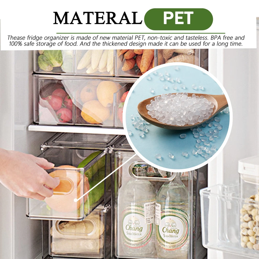 ใ๐๐๐๐ฅ๐ญ๐ก๐ฒ ๐๐ง๐ Sturdy ๐๐๐ญ๐๐ซ๐ข๐๐ฅใOur refrigerator organizer bins is made of more thicker, more sturdy, non-and tasteless PET materials than most similar products, this fridge organizer bins can resist high temperature and strong low temperature, very sturdy, so they can be used for a long time. Our fridge organizer is made of food-PET material without BPA, safe storage of food. Its high transparency design allow you to see clearly each of your groceries at all times to avoid food from going bad. Easily washed with warm water and soap. ใ๐๐ฎ๐ฅ๐ฅ ๐๐ฎ๐ญ & Stably ๐๐ญ๐๐๐ค๐๐๐ฅ๐ใOur clear storage bins are stackable drawer design. Built-in, easy-grip side handles make it easy to transport from shelf to table. Add more room and more by stacking these fridge organizer drawers to gain vertical storage. With anti-slip particles, installed at the bottom of these storage bins, can ensure stability when stacked, and don't tip over. ใ๐๐๐ซ๐ฌ๐๐ญ๐ข๐ฅ๐ ๐๐ฌ๐ใOur multi-functional stackable storage drawer can not only be placed in refrigerators, freezers, cabinets, for storing vegetables, fruits, eggs, cheese, milk, condiments, meat or canned drinks, etc. They are also very suitable for office, bedrooms, bathrooms storing toys, cosmetics and any small items in life. These storage bins can be used in any room of home. ใ๐๐ง๐ก๐๐ง๐๐ ๐๐๐ซ๐ญ๐ข๐๐๐ฅ ๐๐ฉ๐๐๐ ๐๐ญ๐ข๐ฅ๐ข๐ณ๐๐ญ๐ข๐จ๐งใCreate storage on top for deli, fruits or dairy products by placing the fridge organizer bins side by side or stacking. Clear view make everything you need can be easily find without removing the refrigerator organizing drawers. Use individually or together to have a custom storage system. Keep items contained, organized and dust-free making it easier to take them out. ( Note: this is a small size, 2 medium fridge drawers 13.4x 4.96 x 4.3 inches.). ใ๐๐๐๐ค๐๐ ๐ ๐ข๐ง๐๐ฅ๐ฎ๐๐ใ Measures 1 Package includes 2 shell and 2 inner drawer. identical 3.17-quart (13.4"L x 4.96"W x 4.3"H)drawer storage boxes can meet all your needs.Do not place the plastic storage bins in dishwasher.(Please confirm the size is suitable for your fridge.)