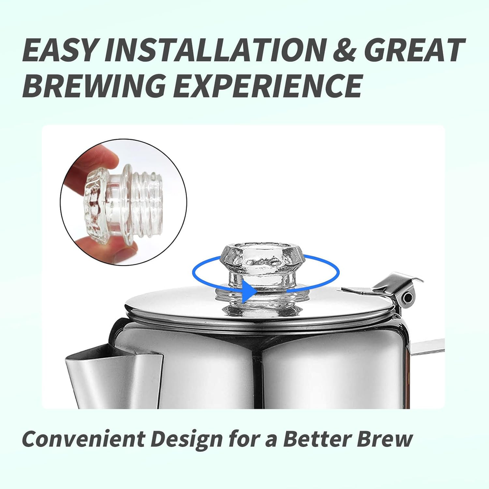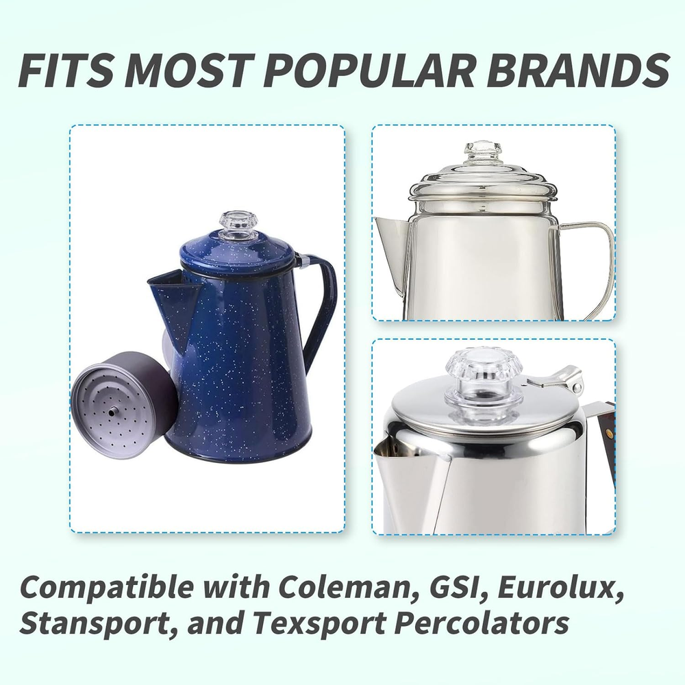 These clear glass percolator tops are a game-changer! The perfect size, durable, and heat-resistant—plus, being dishwasher-safe makes cleanup a breeze. A must-have for coffee lovers, and the 2-pack ensures you always have a backup. Great value for the price!