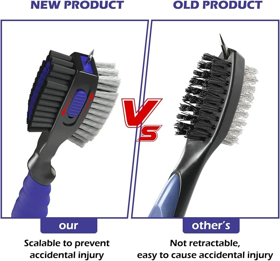 2 Pack Golf Club Brushes with Retractable Zipline Carabiner and Groove Cleaner