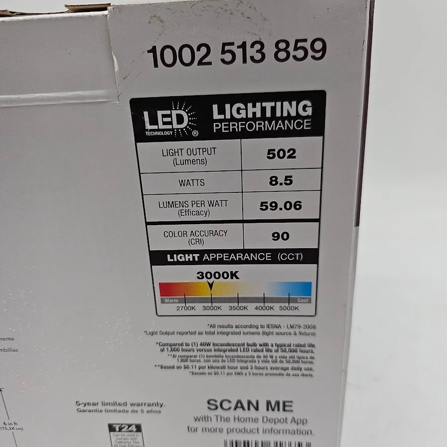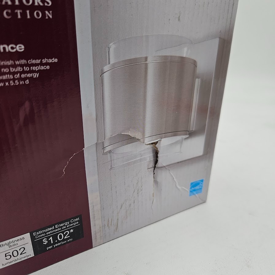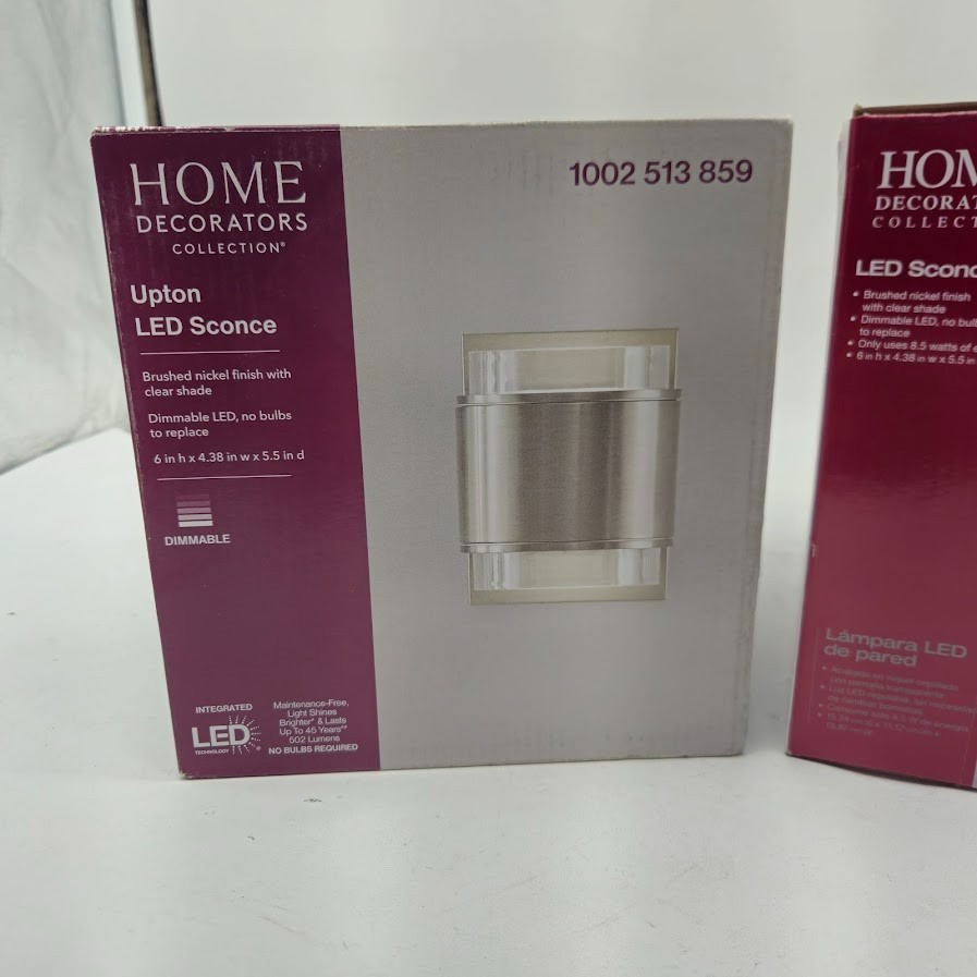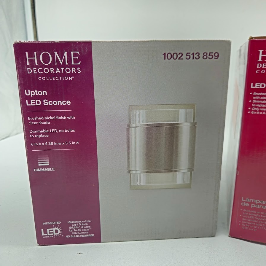 Hampton Bay Upton Brushed Nickel Integrated LED Wall Sconce – 3000K Warm White, 502 Lumens About This Product The Hampton Bay Upton LED Wall Sconce features a clean, modern cylinder design finished in brushed nickel for a sleek contemporary look. Designed to illuminate both upward and downward, this bi-directional fixture provides balanced accent lighting that enhances hallways, bedrooms, living areas, and other indoor dry locations. The integrated LED delivers 3000K warm white light with 502 lumens and a 90 CRI rating, offering comfortable illumination and accurate color rendering for everyday use. With no bulbs required, this maintenance-free fixture provides long-lasting efficiency and dependable performance. Built with a clear acrylic shade and ETL-certified components, the Upton sconce ensures safety and stability. It is compatible with dimmer switches for adjustable brightness and includes installation hardware and instructions for straightforward setup. Features & Highlights Bi-Directional Lighting – Illuminates both upward and downward for balanced wall lighting. Integrated LED Technology – No bulbs required; maintenance-free design. 3000K Warm White Light – 502 lumens with 90 CRI for natural, comfortable illumination. Dimmable – Compatible with approved dimmer switches for adjustable brightness. Modern Brushed Nickel Finish – Contemporary style complements various décor themes. Clear Acrylic Shade – Enhances light distribution and visual appeal. Fixture Dimensions – 4.38 in. W x 5.5 in. D x 6 in. H. ETL Certified – Tested for safety and performance. Indoor Dry Location Use Only – Ideal for interior residential spaces. Installation hardware and instructions included for easy setup. We take great care to inspect all items and ensure they are accurately described. Should you have any issues with your purchase, please let us know immediately. We are committed to resolving any concerns promptly and to your satisfaction. Our small business truly appreciates your patronage. Hampton Bay Upton LED wall sconce brushed nickel cylinder light 3000K warm white 502 lumens 90 CRI dimmable indoor wall lighting bi directional up down light modern contemporary wall fixture