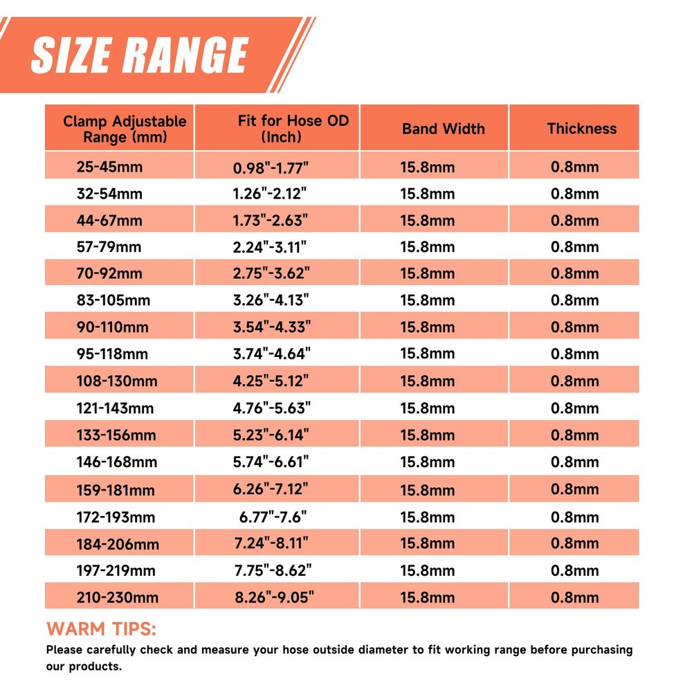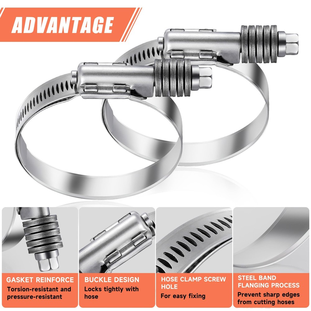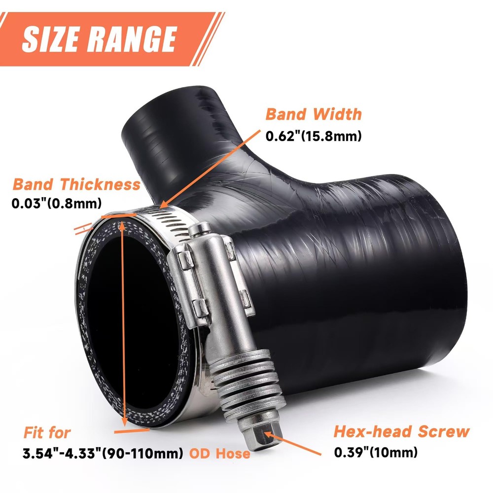 2 Pack Worm Hose Clamp, Adjustable Range 3 1/2"-4 5/16" (90-110mm) 310 Stainless Steel Worm Gear Drive Hose Clamps for Water Pipe, Plumbing, Automotive and Mechanical Application