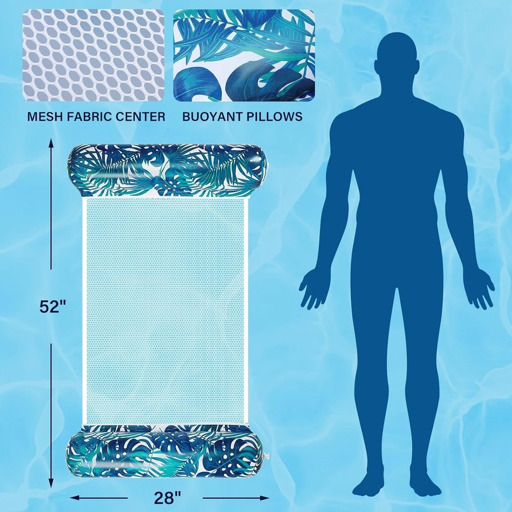 100% Money Back Guarantee if you are not satisfied with your purchase! ____________________ Description: Pool Floats - 2 Pack Pool Float Adult, 4-in-1 Multi-Purpose Water Hammock, Floaties for Adults, Inflatable Pool Floats for Vacation Fun and Rest ● Comfortable Pool Floats - Our pool floaties are easy to get on and off in water. No need to jump or flop. The headrest and footrest provide good support and comfort. You can sit or lie down on this multi-functional pool hammock float to relax and have fun in summer. ● High Quality Materials - Crafted with thick and durable PVC materials, our pool hammock floats for adults are tear-resistant, lightweight, and effortlessly cleanable. These high-quality pool floats adults are designed for long-lasting use and are ideal for travel. ● 2 Pack Floaties for Adults - Each Hammock Pool Float measures 52" x 28" and supports up to 265 lbs. Suitable for individuals between 4 and 6 feet tall. NOTE: For users 13 and older; under 13s should use it with adult supervision. ● 4-in-1 Pool Float - Easily transform it into a hammock, lounge chair, drifter or exercise saddle. You can adjust it to the comfortable position you want to while on the pool floaties. ● Easy to Carry - Our foldable water hammock for adults is incredibly portable. The inflatable part of the Pool Hammock Float features a leak-proof design and can be easily inflated even with just your mouth, making it perfect for a variety of leisure water activities. Take it out and enjoy the fun! 100% Money Back Guarantee: We offer 30 Day Money Back Guarantee from the day you purchased if you’re not satisfied with your product. If you have any questions about our products, please contact us as soon as possible. Customer satisfaction is our absolute priority. Shipping: We are always working hard to ensure your package arrives as soon as possible. Please understand that some factors like weather, high postal traffic, and the performance of shipping companies are outside of our control. We offer free shipping to the lower 48 states and ship within 3 business days of payment, usually sooner. We do not accept P.O. Boxes. Please provide a physical address. You will be notified via eBay messages as soon as your items ship. Delivery: We will ship out the item in 2-3 working day after receiving the payment. Usually the delivery takes 2-5 business days. If you don't receive the items after 10 days, please feel free to contact us. You will get a replacement or a full refund. Please DO NOT open a return request or leave negative feedback without asking for help. Returns (Get Free Return Label): We offer a 30-Day Return Policy on defective/wrong items or items which you are not completely satisfied with. You have the option for a full-refund or an exchange of the item. No need to buy eBay return label. Contact us via eBay messages and get free return label. Returned items must be in all of the original packaging and include all of the original accessories or items that came with it. The item and package should be in original condition. Contact Us: Any queries or issues incurred, please feel free to contact us via eBay message, we will get back to you within 24 hours. Please DO NOT open a return request or leave negative feedback without asking for help. Feedback: Your feedback is very important to us. After you get your package and you are satisfied with our service, please leave us positive feedback. We are highly appreciated for your POSITIVE feedback and 5 stars. Enjoy shopping.