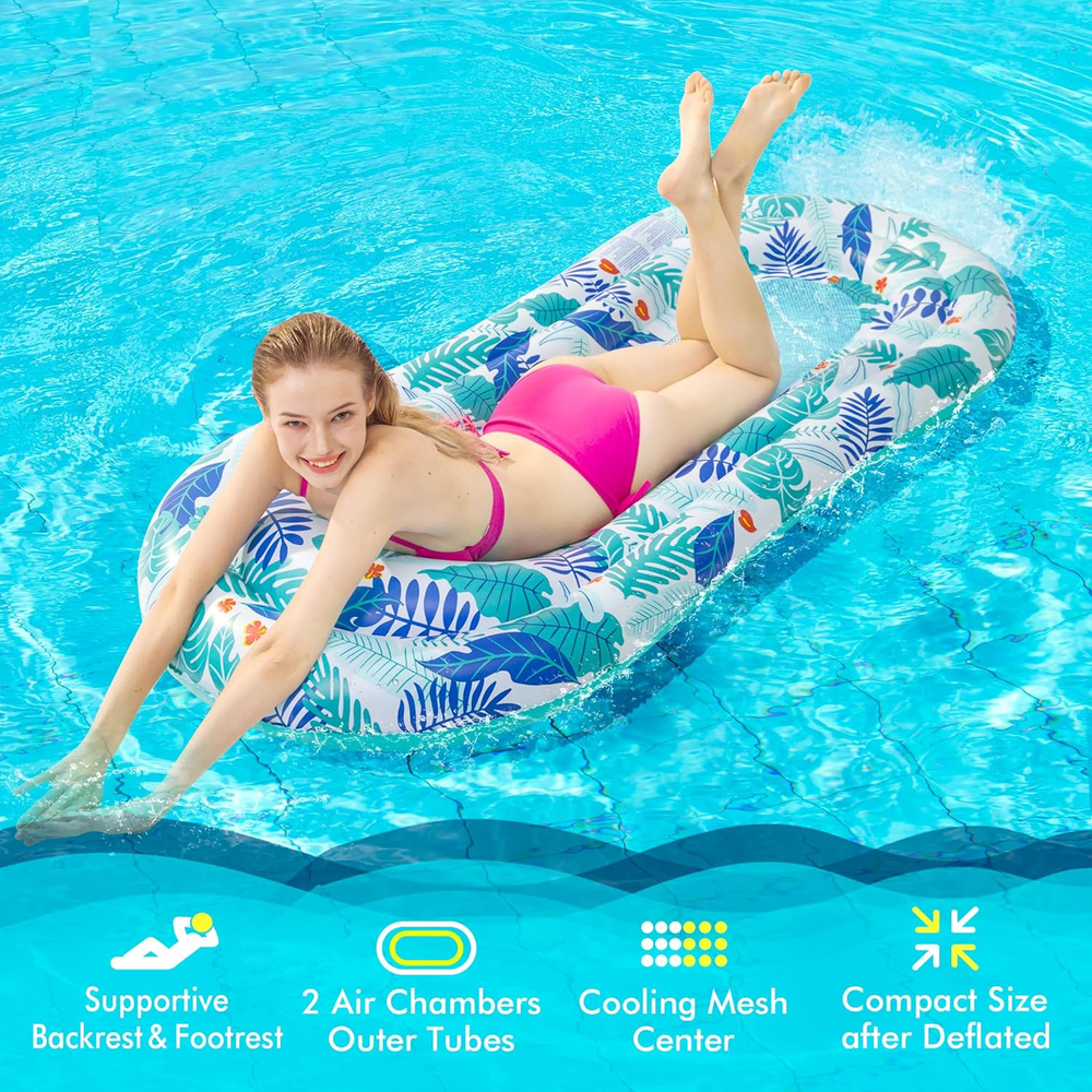 2 Pack Inflatable Pool Loungers for Adults - Water Hammock Floats