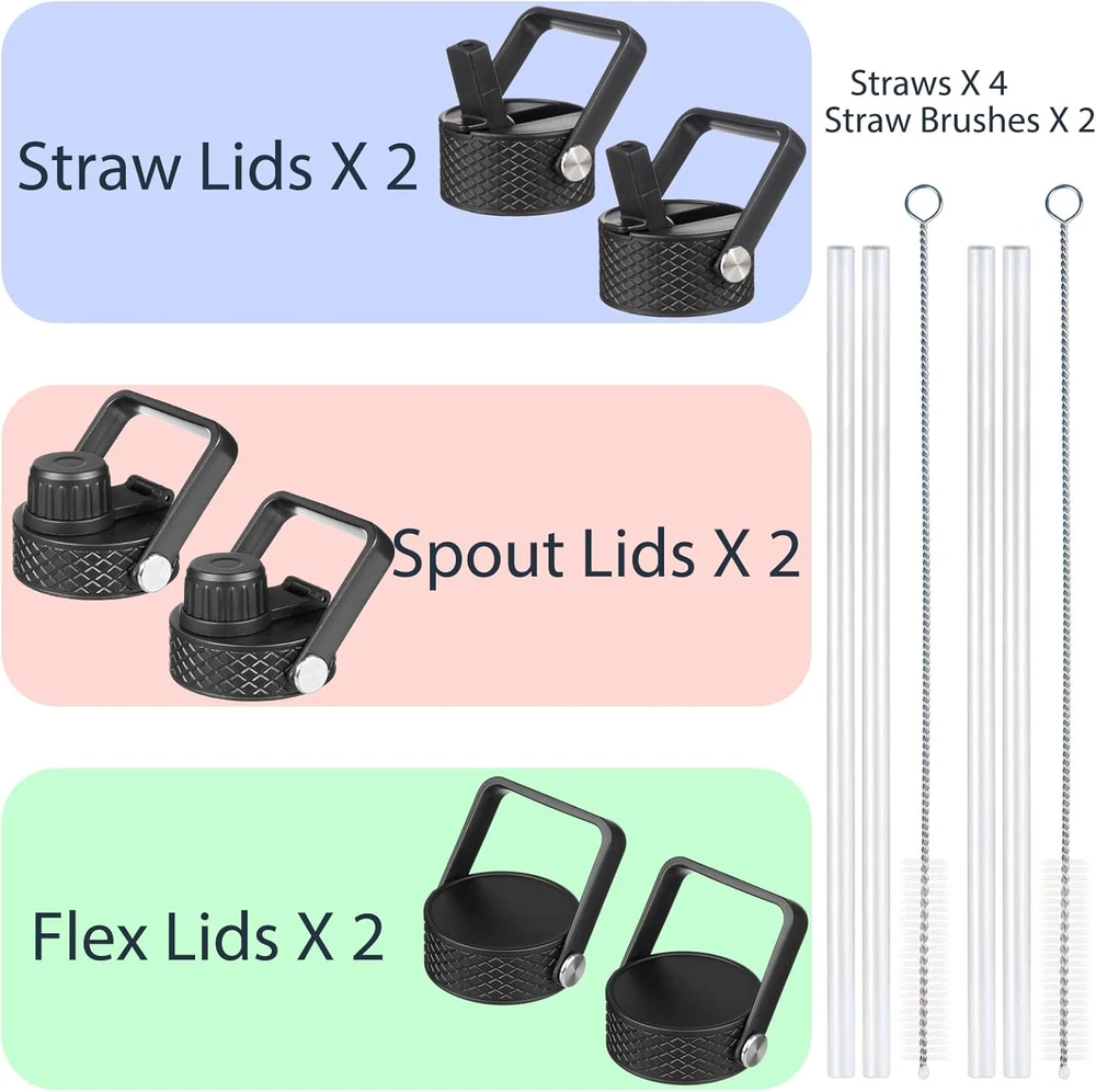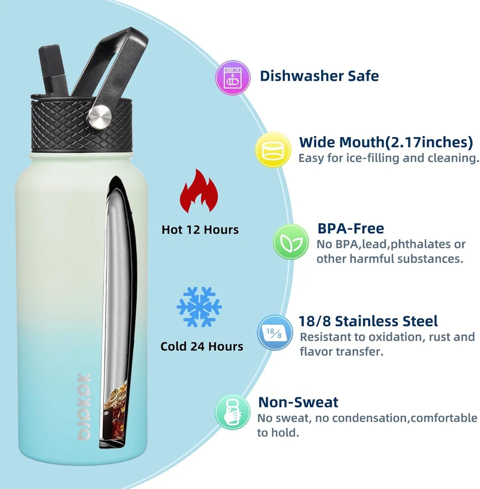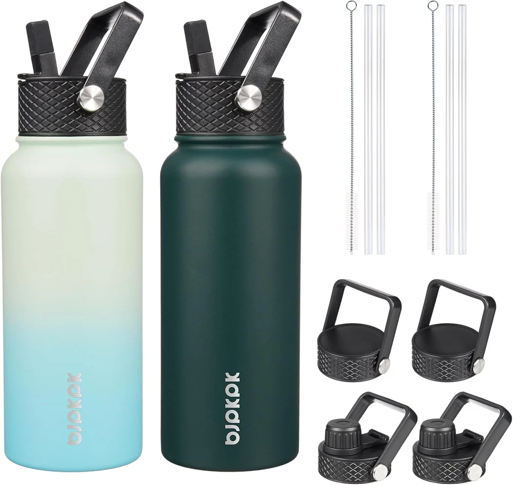 2 Pack Insulated Water Bottles with Straw Lids, 32Oz Stainless Steel Metal Water