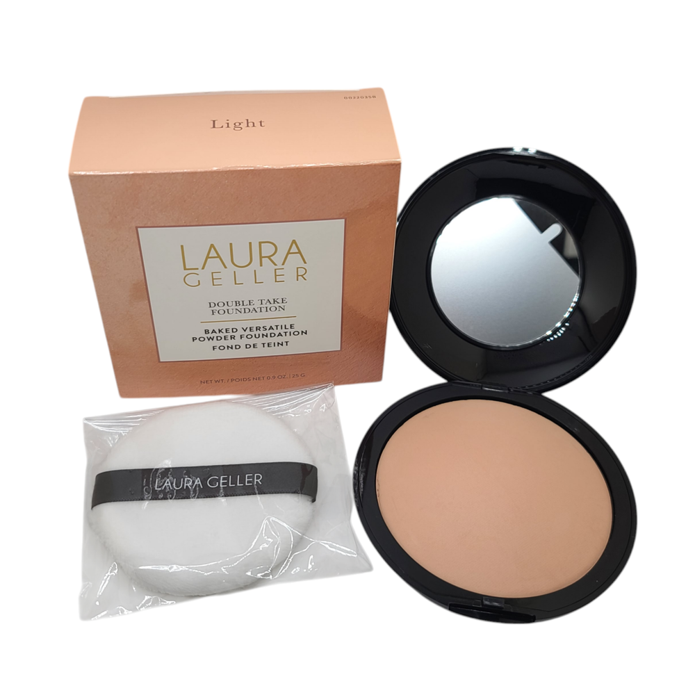 KleverKosmetics Our eBay Store About Us Contact Us Add to Favorite Sellers 2 Pack Laura Geller Double Take Baked Versatile Powder Foundation Light 0.9 oz 2 Pack! DOUBLE TAKE BAKED BUILDABLE FULL COVERAGE POWDER FOUNDATION: Get skin that gets a double take. This foundation gives you instant elegance with full coverage, a classic matte finish that's never cakey, and a long-wear formula that doesn't fade. Handmade in Italy, the creamy formula feels like a treat for skin. LIGHT: Light beige with warm yellow undertones ANTI-AGING INGREDIENTS: With antioxidant-rich Jojoba Seed Oil that softens and soothes skin, Centella Asiatica Extract that hydrates and mitigates sun damage, and anti-aging Camellia Sinensis Leaf Extract, there's plenty to love about how this foundation looks and feels. Not only will it stay on all day, your skin will be better for it. PERFECT FOR: This full-coverage foundation is an all-around favorite, but those with mature skin and fine lines and wrinkles will especially love it. Not only does it never get cakey, but it's made for movement — no cracking or fading with every facial expression. HOW TO APPLY: You can use this matte foundation makeup wet or dry with the included dual-sided pink and white applicator sponge. For dry application, apply foundation with the pink side of the sponge. Gently dab the powder, pat it on the areas that need the most attention first, then blend outward and upward. For more serious coverage, apply it wet with the white side of the sponge. Dampen the sponge, dab the powder and pat onto face then blend outward and upward until fully blended. Pack of 2 Return and Refund Information • Please be aware that colors on the screen may appear slightly different in person. • Please be familiar with product. Feel free to contact us if you have any questions. • DUE TO HEALTH AND SANITARY ISSUES CONCERNING COSMETICS OR SKINCARE WE DO NOT ACCEPT RETURNS ON THESE ITEMS. ALL SALES ARE FINAL. • WE WILL ONLY ACCEPT RETURNS WHEN THE ERROR IS ON OUR END. • Attention VeRO members: We're not affiliated with or endorsed by the companies mentioned in this listing. All trademarks and copyrights are acknowledged, they are only used for informative description of the items offered for sale. Warranty information We are not an authorized dealer of this product and any warranty included with the product may not be honored by the manufacturer.