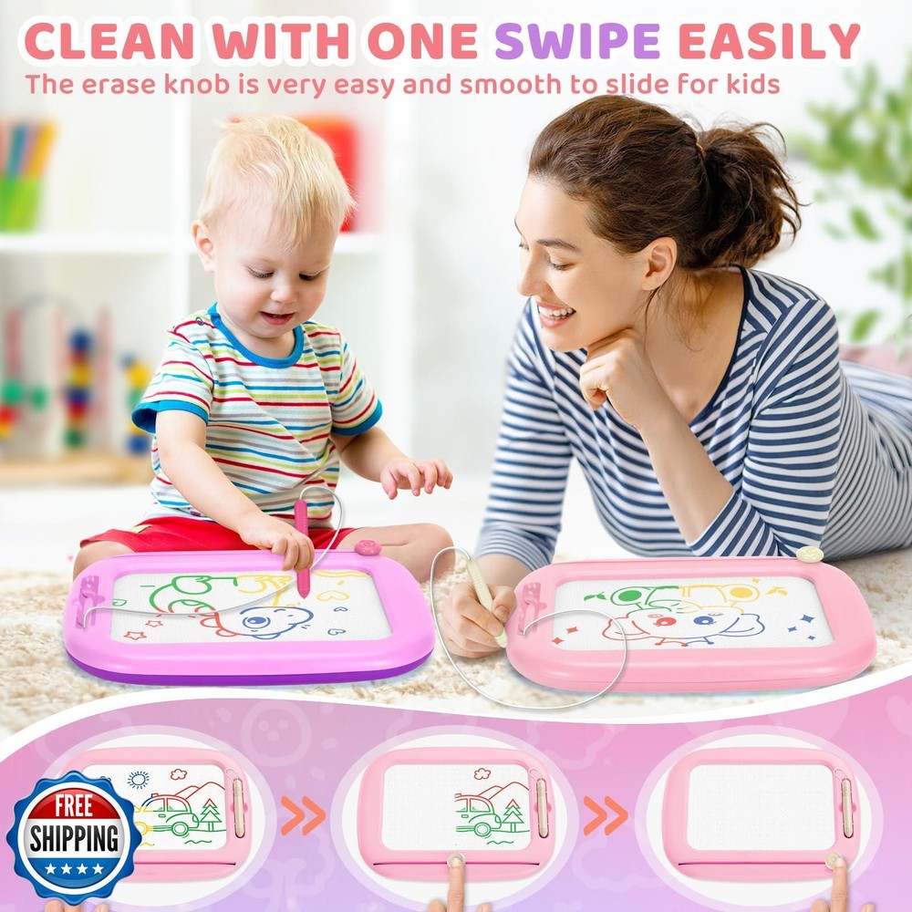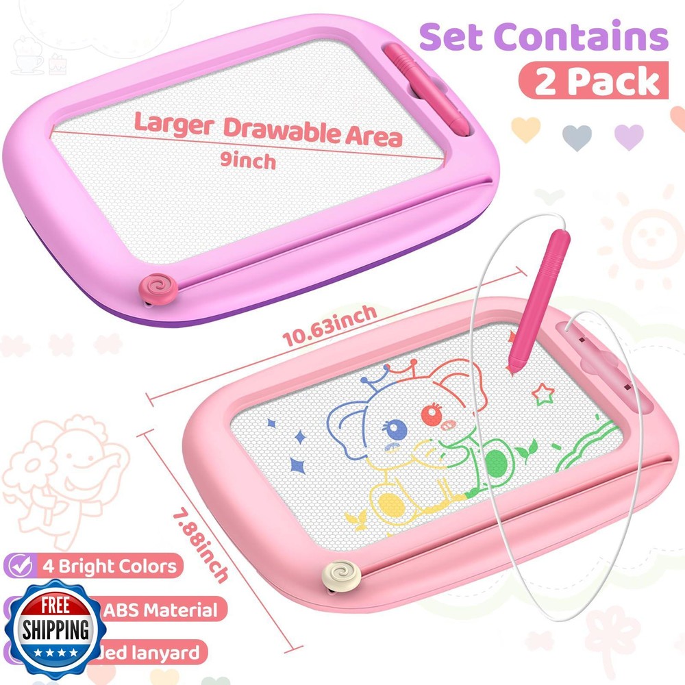 2 Packs Magnetic Drawing Board for Kids, Toddler Girl Toys Age 1-2 and 2-3, Magna Doodle Board for Toddlers 1-3, Educational Learning Toys for 1 2 3 Year Old Girl, Ideal Christmas Birthday Gifts Features Two Piece Magnetic Drawing Board: There are a total of 2 drawing pads in this value set, so don't worry about not having enough to share with your little ones. This toddler doodle board not only develops children's vision, color recognition, imagination and creativity, but also learns letters, numbers and words. Toddler girl toys 2-3. Easy to Use & Won't Get Stained: This kids drawing board is lightweight and portable, ideal toddler travel toys age 1-2 whether traveling by car, train or plane. Equipped with a loss-proof pen and sliding eraser that clears immediately by pulling back and forth. It allows children to easily create vivid artwork and never have to deal with messy paintbrushes and paints again! Reuse it and keep your home tidy at the same time. Cute Four Color Magnetic Doodle Pad: The drawing board has four color zones, which is great for helping your child identify red, yellow, blue and green. Bright colors will inspire little artists to draw, explore creative thinking and enhance children's attention, opening up a world of color and creativity for toddler toys 2-3! Smooth Design & Safe Material: Our magna doodle board is made of high quality and durable ABS, non-toxic, no choking small parts, with smooth edges design, perfect for children to use and won't be harmed in any way, we aim to provide children with a safe, fun and creative drawing space. Ideal Gift for 1 2 3 Year Old Girls: This learning and educational toy is a great choice for 1 2 3 year old baby girls gifts, such as for birthdays, Halloween, Children's Day, Christmas, Thanksgiving, New Year's Day, or any other important days! If for any reason you are not satisfied with your purchase, please click the "Contact Seller" button to email us. Shipping Free & Fast Shipping: We offer free shipping to most of the USA with a normal delivery time of 3-7 days. However, due to the current situation, additional delivery time (up to 3 weeks) may be required for some items. Alternative Carriers: We may use alternative carriers (e.g., USPS, FedEx, UPS) to ensure your package arrives safely and on time. Due to the use of multiple carriers, we are unable to provide a tracking number automatically. Handling Time: Orders are processed and shipped within 1-2 business days of receiving cleared payment. Shipping Restrictions: Shipping to Alaska, Hawaii, Puerto Rico, Guam, and other US territories may incur shipping charges or delivery restrictions. Please contact us before ordering, or your order can be refunded/cancelled. State Restrictions: Certain items may not be shipped to California due to state regulations. Contact for Tracking Updates: If you require tracking updates or have any concerns about the delivery of your order, please feel free to contact us, and we will be happy to assist you. Return Policy 30-Day Hassle-Free Returns: If you are not completely satisfied with your purchase, you can return the item for free within 30 days of receiving it for a full refund or exchange. Easy Return Process: Contact us, and we will provide you with a prepaid return shipping label and detailed instructions. No Restocking Fee: There are no restocking fees for returns. However, the buyer is responsible for return shipping costs if the return is not due to a seller"s error. Refund Processing: Refunds will be processed within 1 business day of receiving the returned item in its original condition. Feedback Your feedback is extremely important to us. We strive to provide the best products and customer service possible. If you are satisfied with your purchase, please take a moment to leave us a positive review. If you have any concerns or issues with your order, please contact us before leaving negative feedback. We are committed to resolving any problems and ensuring your satisfaction. Contact Us If you have any questions or concerns, please feel free to reach out to our customer support team. You can contact us through the eBay messaging system. We are available Monday to Friday, 9:00 am to 5:00 pm EST, and we will do our best to respond to your inquiry within 24 hours. Thank you for supporting our small family business!