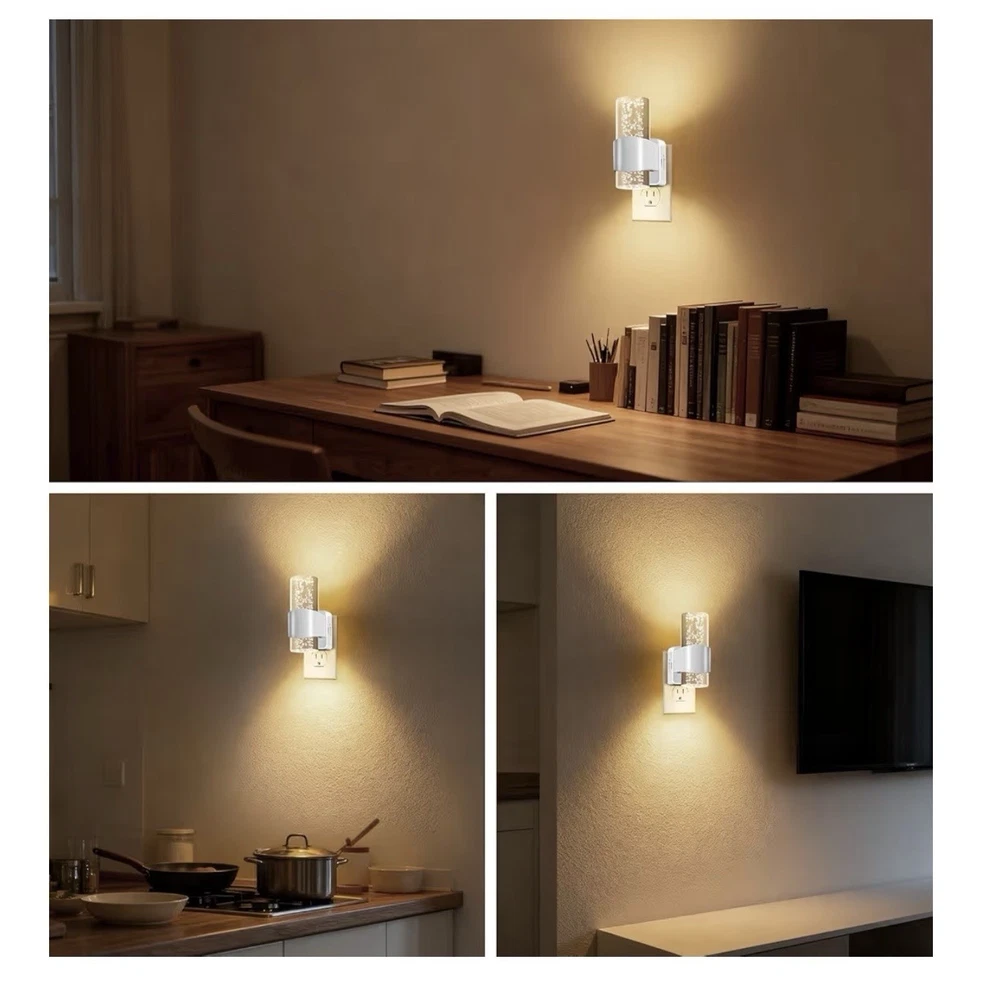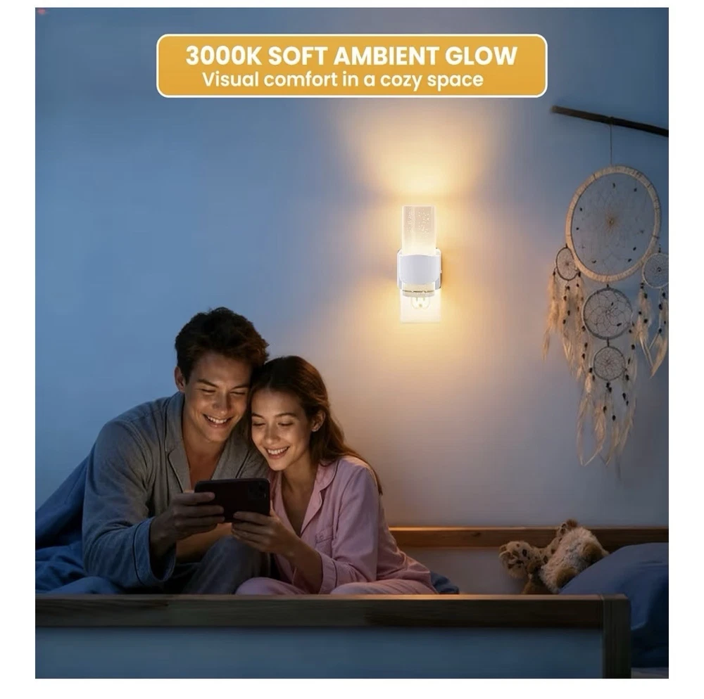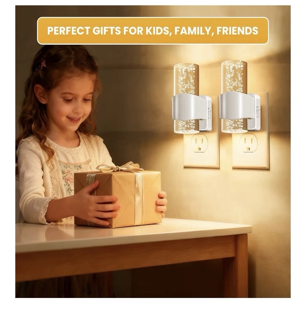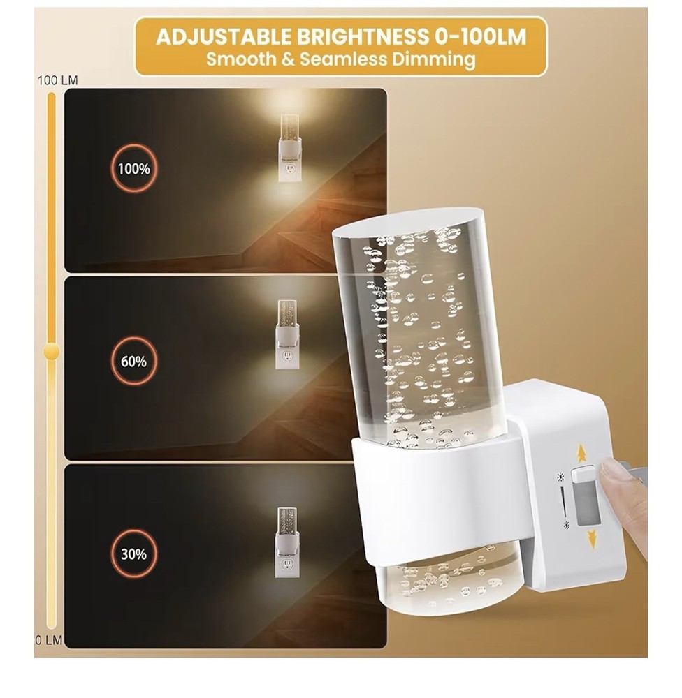 JIURUN 2 Pack Night Lights Plug into Wall, Dimmable LED Night Light with Dusk to Dawn Sensor, Plug in Night Light Brightness Adjustable, 3000K Acrylic Nightlight for Bathroom Hallway