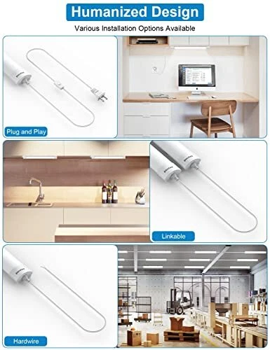 Return Policy Fast Delivery Trusted seller 2 Pack Plug in Ceiling Lights, 1.4FT Plug in Light, IP66 Waterproof 16W LED Tube Light with NO/Off Switch, 1700LM LED Closet Light, 5000K LED Lights for Kitchen, Bathroom, Garage, Vanity... Product Description [SUPER BRIGHT & ENERGY SAVING] - The plug-in under cabinet lighting adopts high-efficiency LEDs and provides a bright 1700LM output for using only 16 watts. Save up to 85% on your electricity bill by replacing fluorescent lights with plug in under cabinet lights. 5000K daylight, 180° beam angle, our LED undercabinet lighting for the kitchen can provide you with comfortable and bright illumination. [Waterproof & WIDE APPLICATION] - Upgrade IP66 waterproof design , makes the LED light for closet can work well even in humid environment, it's an ideal LED plug in light fixtures for indoor or outdoor, such as wardrobe, under cabinets, basements, living room, closets, workshops, work benches, kitchens, laundry rooms, utility rooms etc. [EASY INSTALLATION & SAVE MONEY] - Only simple 3 steps to complete the workbench light with plug in cord installation! The kitchen lights under cabinet can be plug-and-play or hardwired to the wall switch. Package comes with all mounting accessories and a user manual for quick and easy installation, very economical and efficient! You can install the plug in overhead light on the wall or ceiling according to your needs. Really a one-step LED utility light solution for you! [LINKABLE & NO FLICKER] - This under cabinet led lighting could connect up to 18 LED tube lights in series with provided seamless connectors or 12 inches connector cords, Saves your wiring and installation costs. The plug in light strip uses high-quality LED chips and dust-proof frosted cover, no flicker, no buzzing. No RF interference, will not affect other home appliances. [LONG LIFESPAN & 3-YEAR WARRANTY] - we also provide 90-day money-back and 3-year warranty to our customers, promise this LED workbench light with an average lifespan of up to 40,000 hours, please feel free to contact us if t is any quality problem with the plug in lights for ceiling. Shipping Returns Payment Shipping Shipping is FREE to all addresses other than APO/PO boxes in the lower 48 states. All our stock ships from US-based warehouses. Shipped via USPS or UPS (depending on location and package weight) Unless stated otherwise, all orders will ship within 24-72 hours of your payment being processed. Check our feedback to see the great reviews of FAST shipping we offer. Returns Seller does not accept returns Payment We currently accept payment via eBay managed payments only. Once payment is cleared, we will dispatch your shipment within 1-3 business days. Please refer to the "Shipping" tab for more information regarding shipping speed to your destination.