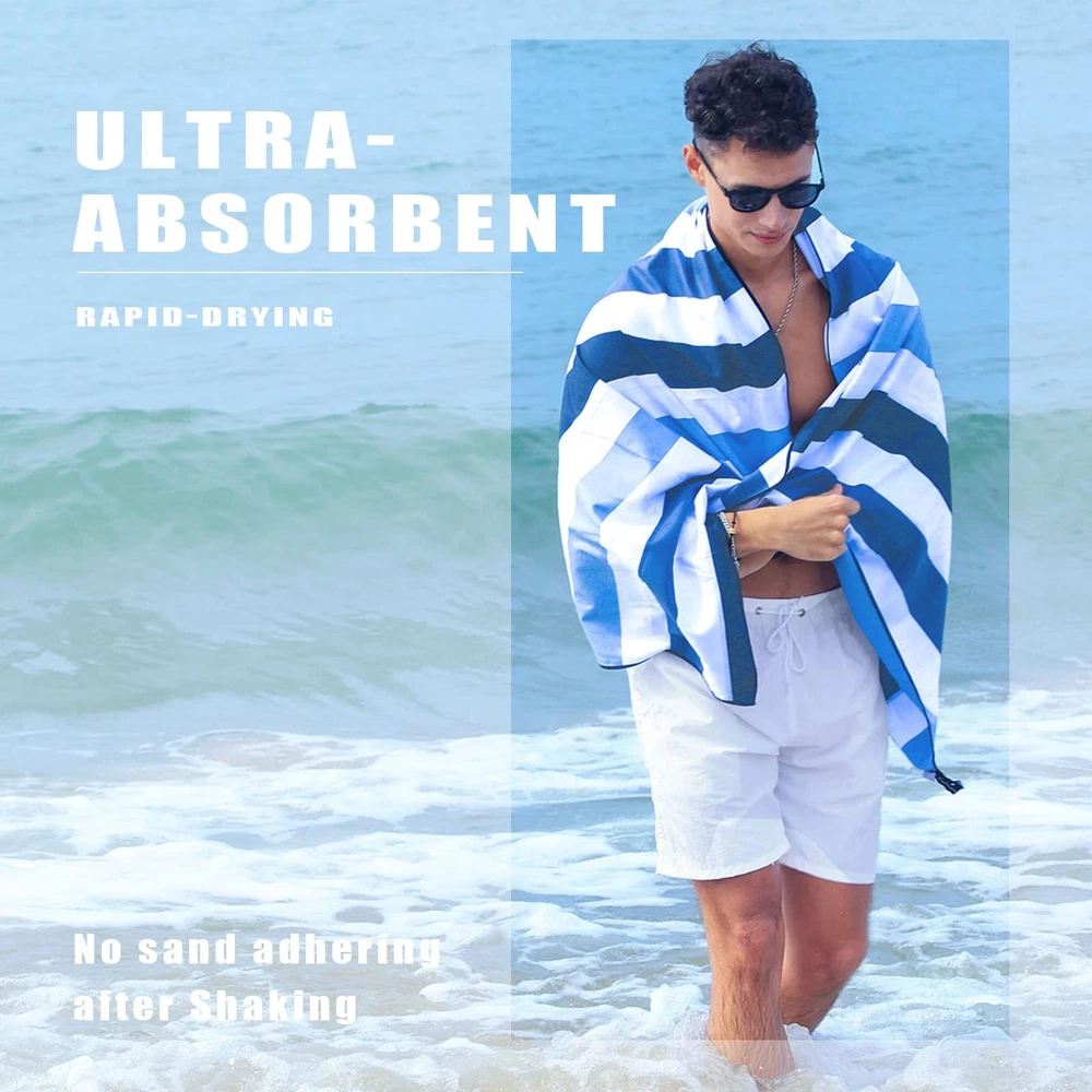 1. Absolutely love these beach towels! The microfiber material is incredibly soft, dries fast, and shakes off sand effortlessly. Perfect size for lounging, and the retro stripes add a stylish touch. Lightweight and compact, they’re ideal for travel or pool days. Highly recommend for anyone who hates dealing with heavy, sandy towels—these are a game-changer!