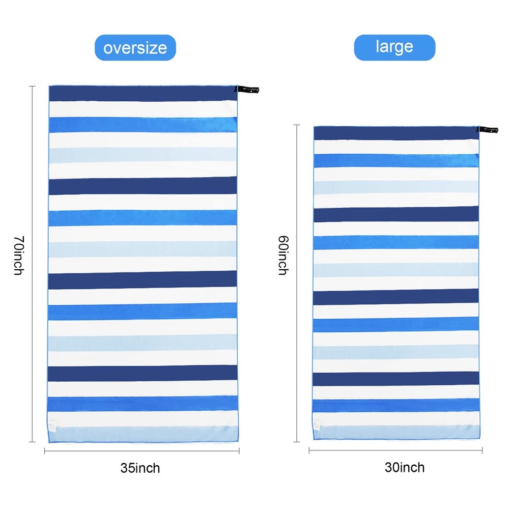 2 Pack Quick Dry Microfiber Beach Towels Sand Free Cabana Stripe