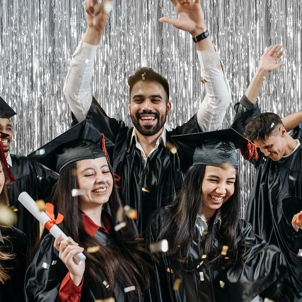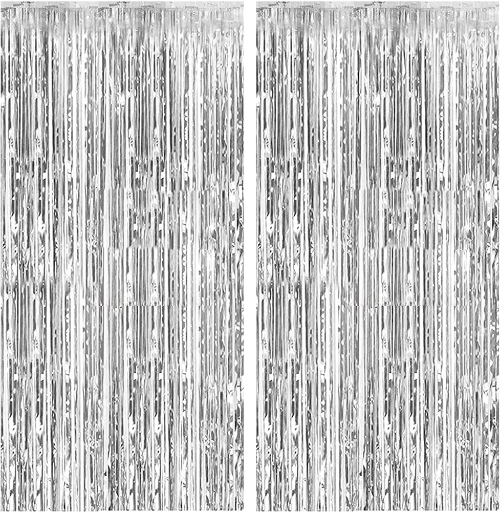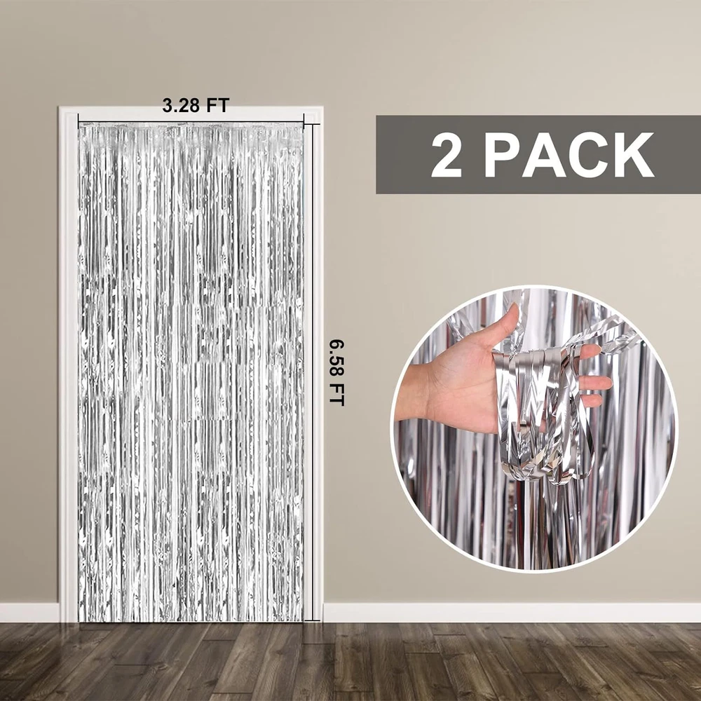 2 Pack Silver or Gold Foil Curtains - Metallic Tinsel Backdrop for Parties