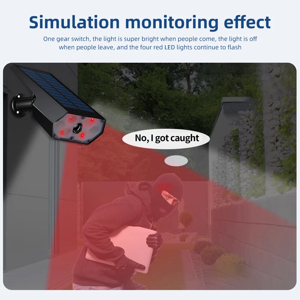 2 Pack Solar Dummy Camera Lights Motion Sensor Outdoor Lights 3 Mode Spot Lights