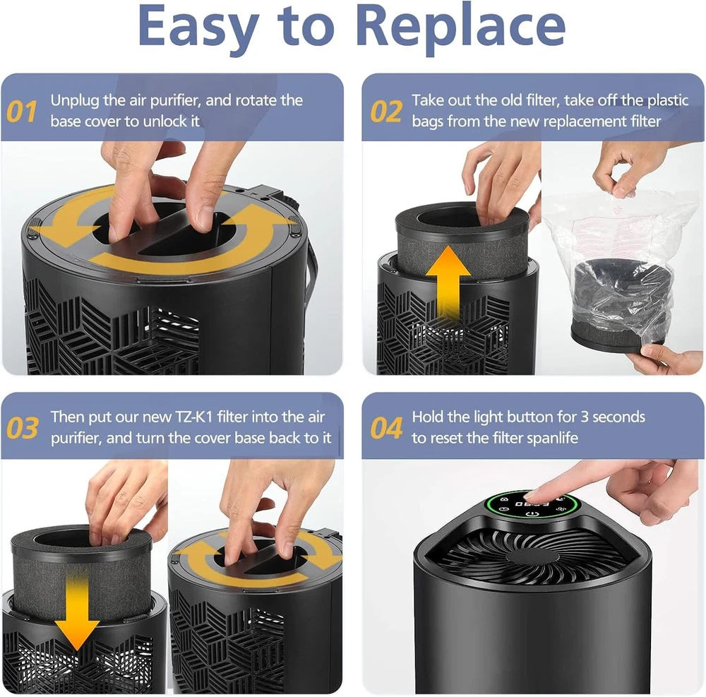 2 Pack TZ-K1 True HEPA Replacement Filter Compatible with FreAire Black Product Details Brand Name: Cabiclean Model Info: TZ-K1 Item Weight: 10.2 ounces Product Dimensions: 5.2 x 5.2 x 3.7 inches Item model number: TZ-K1 Part Number: TZK1-B Special Features: Attaching 99.7% of the airborne particles as small as 0.3 microns Color: Black Compatible Device: Compatible with FreAire KN6391 Air Purifier, Compatible with MK-01, MK-06 Air Purifier, Compatible with Kloudi DH-JH01 Air Purifier, Compatible with ToLife TZ-K1 Air Purifier, Compatible with POMPRON MJ001H Air Purifier Material Type: H13 True HEPA Filter and Activated Carbon Filter and Pre Filter Included Components: Package included 2 pack black TZ-K1 filters Batteries Included?: No Batteries Required?: No Brand: Cabiclean Material: H13 True HEPA Filter and Activated Carbon Filter and Pre Filter Product Dimensions: 5.2"L x 5.2"W x 3.7"Th Compatible Devices: Compatible with FreAire KN6391 Air Purifier, Compatible with MK-01, MK-06 Air Purifier, Compatible with Kloudi DH-JH01 Air Purifier, Compatible with ToLife TZ-K1 Air Purifier, Compatible with POMPRON MJ001H Air Purifier Compatible with FreAire KN6391 Air Purifier, Compatible with MK-01, MK-06 Air Purifier, Compatible with Kloudi DH-JH01 Air Purifier, Compatible with ToLife TZ-K1 Air Purifier, Compatible with POMPRON MJ001H Air PurifierCompatible with FreAire KN6391 Air Purifier, Compatible with MK-01, MK-06 Air Purifier, Compatible with Kloudi DH-JH01 Air Purifier, Compatible with ToLife TZ-K1 Air Purifier, Compatible with POMPRON MJ001H Air Purifier See more Number of Items: 2 Manufacturer: Cabiclean Product Grade: lightly used Unit Count: 2.0 Count PERFECT FIT: The 3-in-1 H13 True HEPA filter is fully compatible with FreAire KN6391 air purifier. Also compatible with ToLife TZ-K1 air puri-fier, compatible with MK-01 MK-06 air puri-fier, and compatible with Kloudi DH-JH01. Breathing fresh air all day ATTENTION: Our tz-k1 replacement filter is not compatible with FreAire EPI266 and HAP601 air puri-fier. Not compatibl with Tolife TZ-K2 air puri-fier. You can check the Model Number on the product label or the rear of the machine 3 STAGE FILTRATION: Our TZ-K1 true hepa replacement filter adopts 3-in-1 filtration system, includes Pre-filter, True HEPA filter and activated carbon filter. Attaching 99.7% of the airborne particles such as hair, fine dust, pet dander, smoke and odors HIGH PERFORMANCE: This tz-k1 replacement filter with upgraded HEPA technology can achieve a better purification effect than traditional general HEPA. Enhanced with statically charged fibers to attach at least 99.97% of 0.3-micron airborne particles EASY TO REPLACE: Our air purifier replacement filter tz-k1 is easy to replace. Take off the palstic bags from new filter and place it into your air puri-fier. Replace the TZ-K1 air filter each 3-6 months for optimal performance depends on your environment SUPER CRAFT: Our air purifier model tz-k1 filter is made of premium non-woven fabric and activated carbon, both adopt lower energy consumption and lower density structure technology, with higher efficiency and less pressure to ensure maximum filtration COST-EFFECTIVE INVESTMENT: Pakages contains 2 pack good quality replacement filters for tz-k1 air puri-fier. Packaged well in sealed plastic wrap. Selecting high-quality & durable filters with maximum efficiency can help you save cost BUY WITH CONFIDENCE: Cabiclean is committed to offering high-quality products and values customers using experience and satisfaction. Please don't worry and buy it with confidence. If you encounter any problems, please contact us
