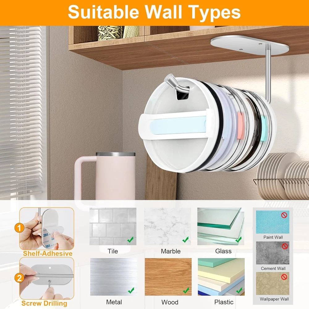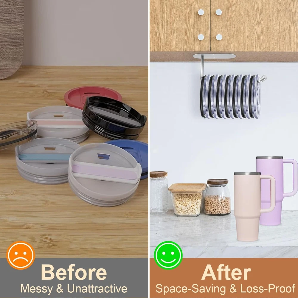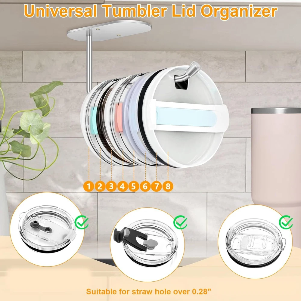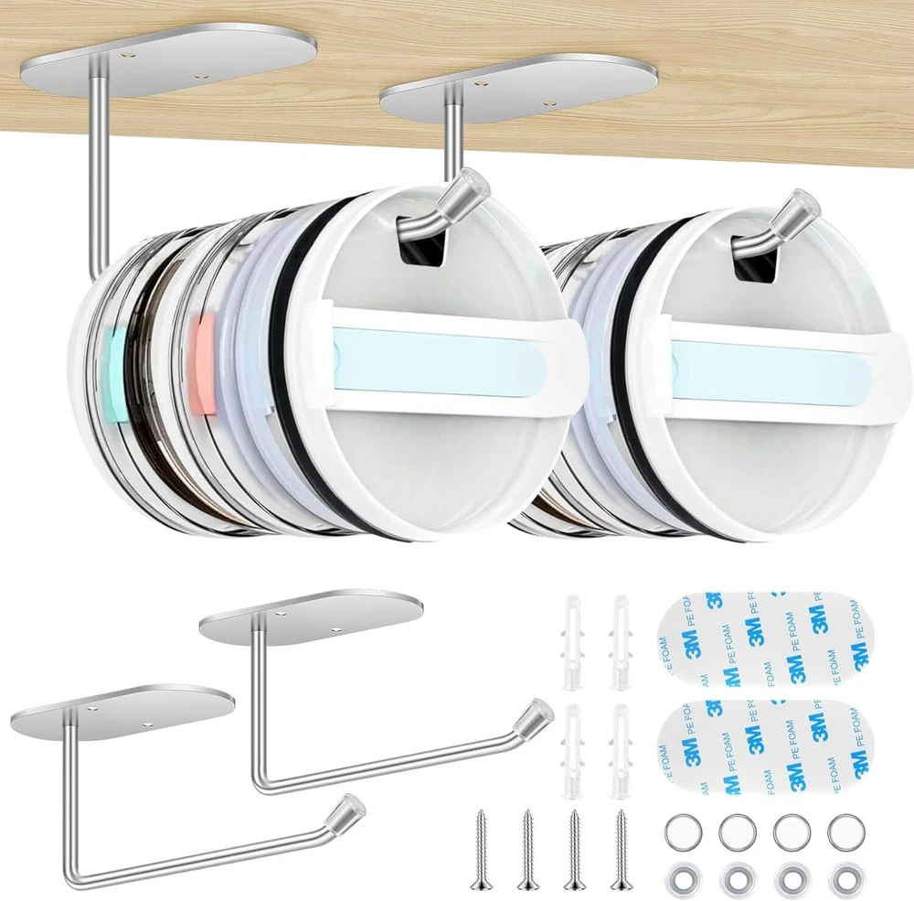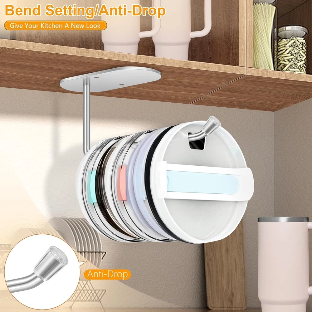2 Pack Tumbler Lid Organizer, Hook for Cabinet Space Silver