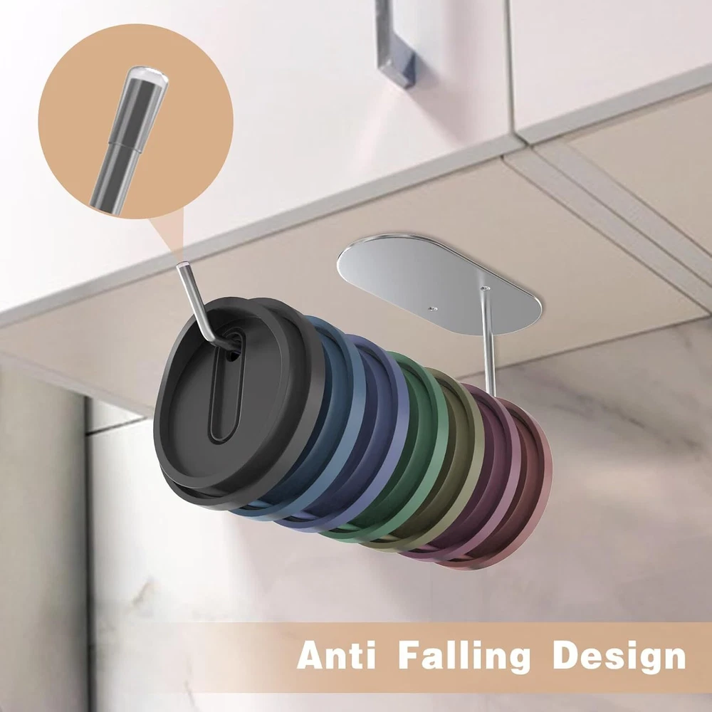 2 Pack Tumbler Lid Organizers, Stanley|Yeti|Simple Modern Cup Hook Silver Product Details Color: Silver Brand: Antmoilios Material: Stainless Steel Finish Type: 304 Stainless Steel Mounting Type: Hook self-adhesive Style: 304 Stainless Steel Weight Limit: 33 Pounds Special Feature: Good adhesion, firm and not easily detached, Rust Resistant Recommended Uses For Product: Cup And Mug Shape: rectangular prism Theme: Kitchen Organization Included Components: 304 Stainless Steel Item dimensions L x W x H: 7.9 x 1.7 x 2.9 inches Number of Hooks: 2 Surface Recommendation: Smooth and textured surfaces Maximum Weight Recommendation: 25 Pounds Manufacturer: Antmoilios Item Weight: 2.99 ounces Product Dimensions: 7.9 x 1.7 x 2.9 inches Country of Origin: China Item model number: 2 Finish: 304 Stainless Steel Item Package Quantity: 1 Maximum Weight Capacity: 33 Pounds Special Features: Good adhesion, firm and not easily detached, Rust Resistant Batteries Required?: No Color: Silver Brand: Antmoilios Material: Stainless Steel Finish Type: 304 Stainless Steel Mounting Type: Hook self-adhesive 【Tumbler Lid Organizer】Keep your kitchen counters clear and your lids within reach! Under Cabinet Tumbler lid organizer is designed to maximize space efficiency. The sleek design seamlessly integrates under your kitchen cabinets, ensuring your tumbler lids are organized and accessible without taking up precious counter space. 【tumbler Lid Storage Hook】Cup lid organizer from robust 0.3in/7mm thick stainless steel, this 304 stainless steel tumbler lid organizer promises longevity and resilience. Even with a full load of lids, it maintains its shape without warping. Depend on this high-quality storage solution to keep your lids in order for years to come. 【Easy to Install】Our cup lid holder offers flexibility with two installation methods: a self-adhesive option for smooth surfaces and a screw drilling alternative for textured areas. Tailor the installation to your kitchen's needs and enjoy a stable, secure hold for all your tumbler lids. 【Elegant Design for Modern Kitchens】The water bottle lid organizer of this Cabinet Cup Lid Organizer not only makes it easy to store and retrieve lids but also adds a touch of elegance to your kitchen decor. Its clutter-free layout promotes a tidy, efficient, and stylish culinary environment. 【Ideal Gift for Organized Living】A perfect addition to any home, this Tumbler Lid Holder simplifies the organization of cup lids in various settings, from kitchen counters to dining tables, and even home offices. It's an excellent gift for parents, friends, or anyone who appreciates a well-ordered living space.