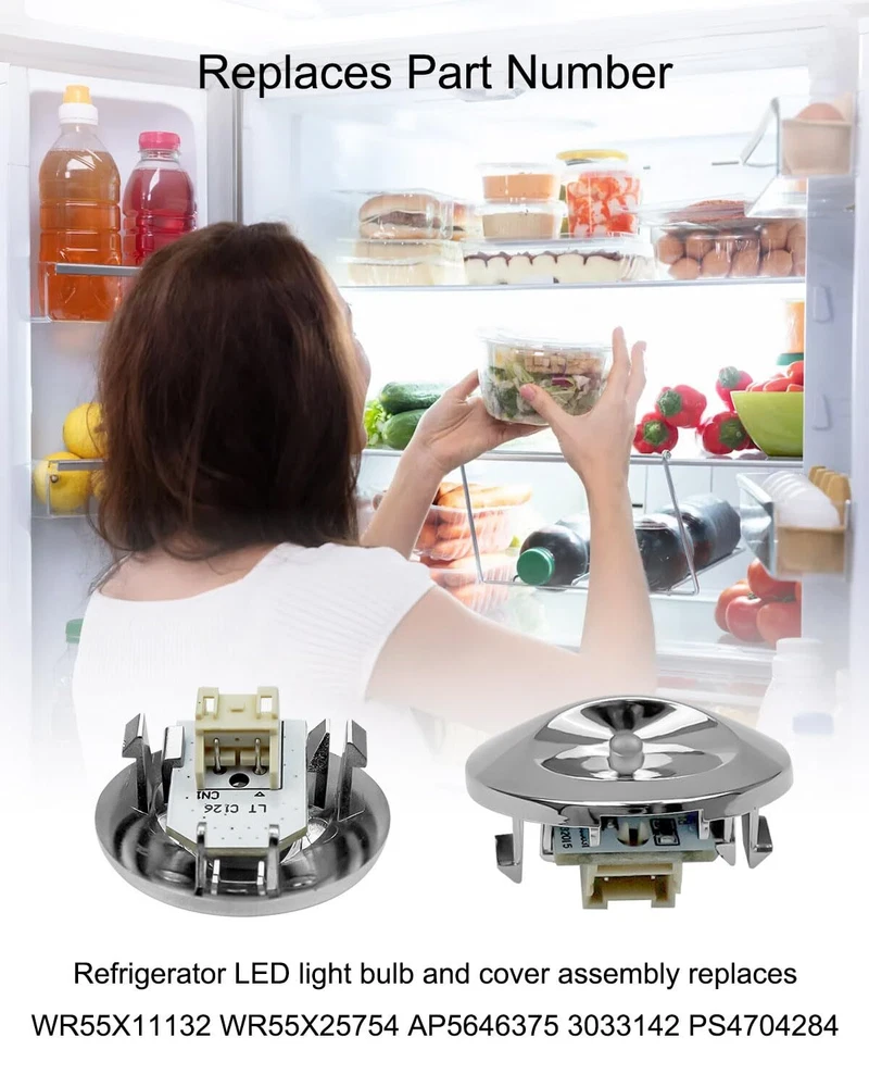 Refrigerator Led Light and Cover Assembly Replace WR55X26487 WR55X30603 WR55X30602 WR55X26486 3033142 AP5646375 PS4704284 Effectively solve the refrigerator LED light dim, flicker, bulb damage or light chip damage Long life, reduce the frequency of replacement, so that you enjoy bright lighting for a long time The LED light line is soft and bright, making the items inside the refrigerator easier to see and providing a comfortable use experience LED lights do not generate too much heat, which helps to keep the internal temperature of the refrigerator stable and keep the food fresh Small and lightweight, suitable for installation in the refrigerator interior lighting device, does not take up too much space, to meet the needs of users on the refrigerator interior space Compatible with GE LED refrigerator bulb Model: Compatible with CFE28TP2MBS1-GEH / CFE28TP2MCS1-GEH / CFE28TP2MDS1-GEH / CFE28TP2MES1-GEH / CFE28TP2MES1-GEH / CFE28TP2MFS1-GEH / CFE28TP2MFS1-GEH / CFE28TP2MFS1-GEH / CFE28TP2MGS1 -GEH / CFE28TP2MGS1-GEH / CFE28TP2MGS1- GEH / CFE28TP2MHS1-GEH / CFE28TP2MIS1-GEH / CFE28TP2MIS1-GEH / CFE28TP2MIS1-GEH Compatible with WR55X11132 Refrigerator LED Light Model: Compatible with CFE28TP2MJS1-GEH / CFE28TP2MKS1-GEH / CFE28TP3MBD1-GEH / CFE28TP3MBD1-GEH / CFE28TP3MBW2-GEH / CFE28TP3MCD1-GEH / CFE28TP3MDD1-GEH / CFE28TP3MED1-GEH / CFE 28TP3MED1-GEH / CFE28TP3MFD1-GEH / CFE28TP3MFD1-GEH / CFE28TP3MFD1-GEH / CFE28TP3MGD1-GEH Replaces Part Number: Refrigerator LED light bulb and cover assembly replaces WR55X11132 WR55X25754 AP142 PS4704284 Durable and Reliable: Made of high-quality ABS plastic, with excellent low temperature resistance, anti-aging and waterproof, long service life, reduce the frequency of replacement, so that you can enjoy a clear and bright lighting effect for a long time Easy to Install: No complicated steps, plug and play, direct replacement, quick restoration of bright and soft lighting, so that you can clearly see the items in the refrigerator at any time, improve the use experience