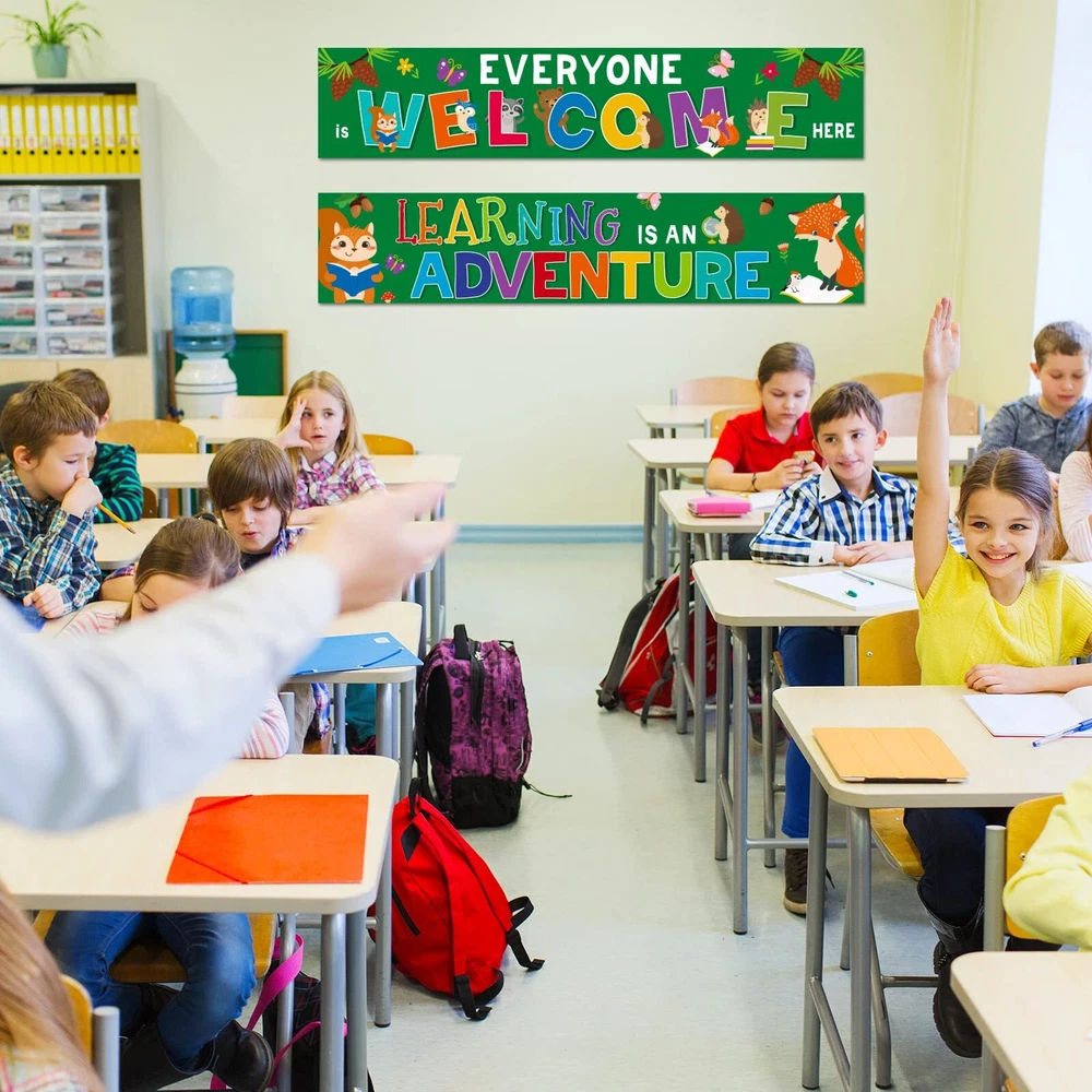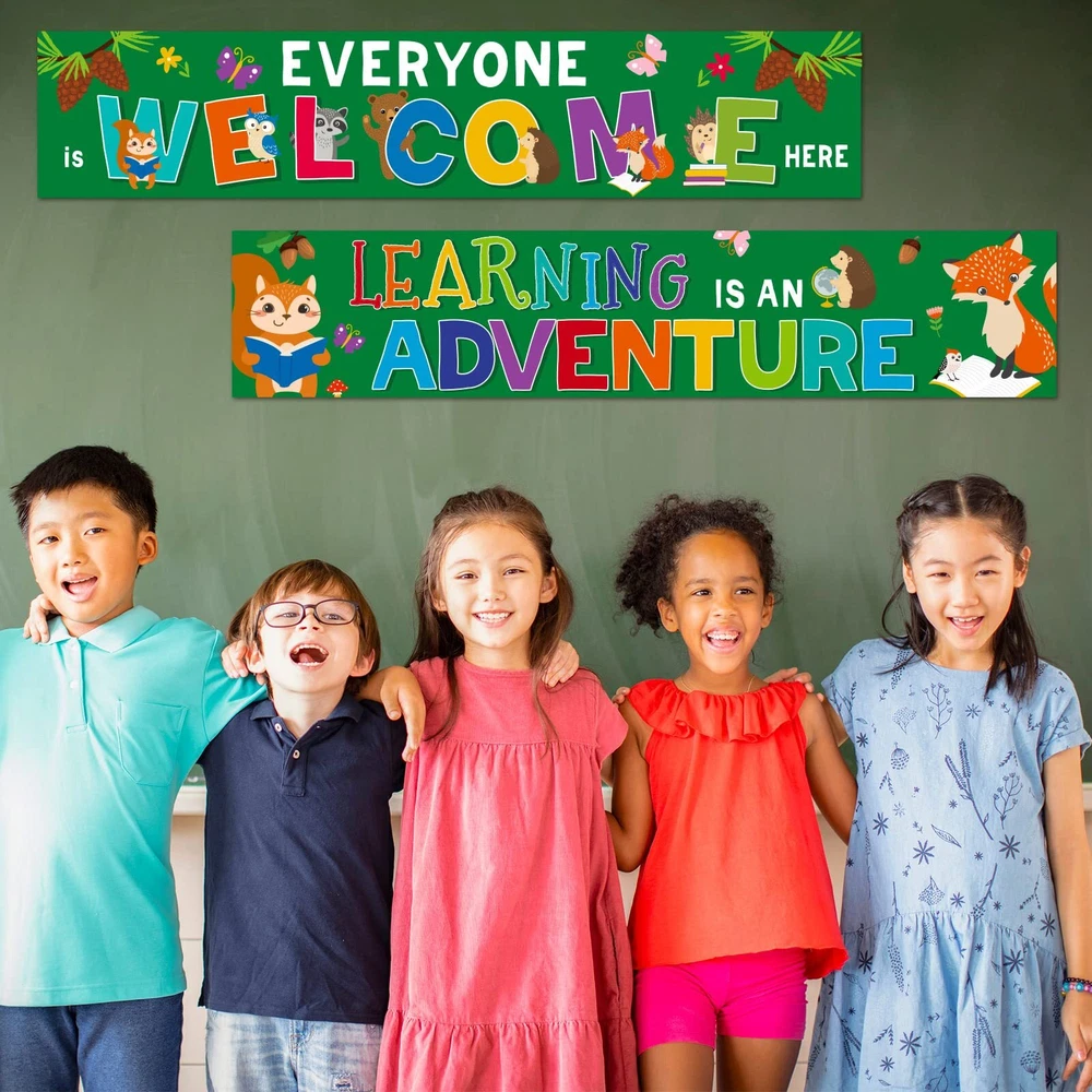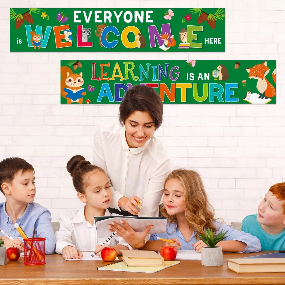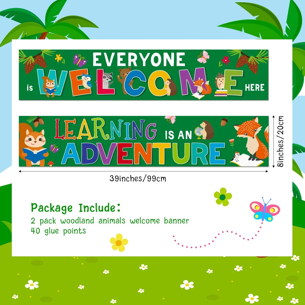 Features: Warm to share: These woodland border banners are suitable for your friends, colleagues, parents or someone who means a lot towards you as presents on anniversary, Valentine's Day, birthday and so on, which will express your love for them, enhancing the relationships between you. Receive DIY pleasure: Our classroom decoration banner is very easy to use, you just need to cut the banner to the desired length, and stick them anywhere you want to decorate, you can save time and effort and enjoy the creative process while experiencing the joy of harvesting artistic results. Specifications: Material: paper Size: about 39 x 8 inches Color: as the pictures shown Package includes: 2 x Woodland welcome banners Notes: Manual measurement, please allow slight errors on size. The color may exist a slight difference due to different screen displays. Classroom Welcome Banner Choice: these classroom welcome posters are good classroom decorations for back to school party, family gatherings events, teacher student use, they are good to serve as daily reminders to help form a positive mindset; Good use for wall art, for bulletin boards, whiteboard, making your class really stand out Classroom Bulletin Poster Package: you will get 2 pieces woodland welcome banner with 40 glue points, these woodland welcome poster can so match with woodland cutout, woodland bulletin board border or other woodland classroom decorations to decorate your school party, leave you unforgettable memory Classroom Motivational Poster Size: the size of a single piece of these positive banners for classroom is about 39 x 8 inches, you can fix them with glue points or a stapler; Decorate the wall by DIY to express your ideas Bulletin Board banner Material: these woodland decorations are made of quality paper, covered with serviceable PET film for waterproof, tear resistant, with good performance, can create fun for your home decoration or wall bulletin boards Back to school Poster Service: you do not have to worry about purchasing our back to school decorations; They will make your class party look very special and eye catching