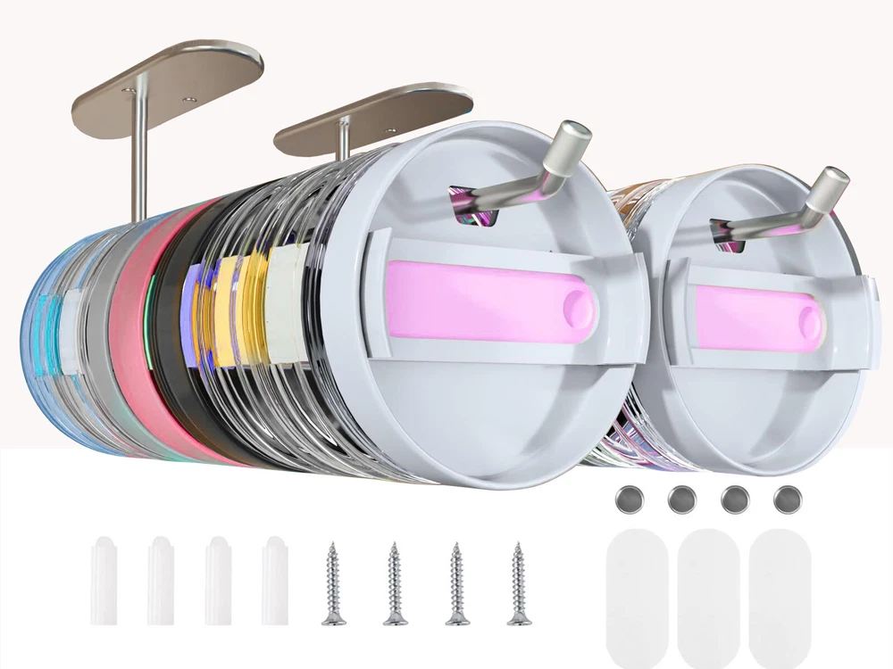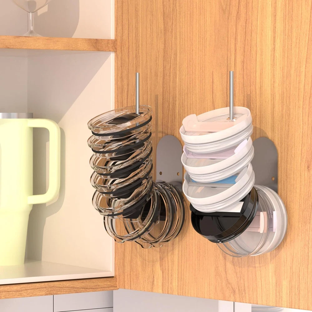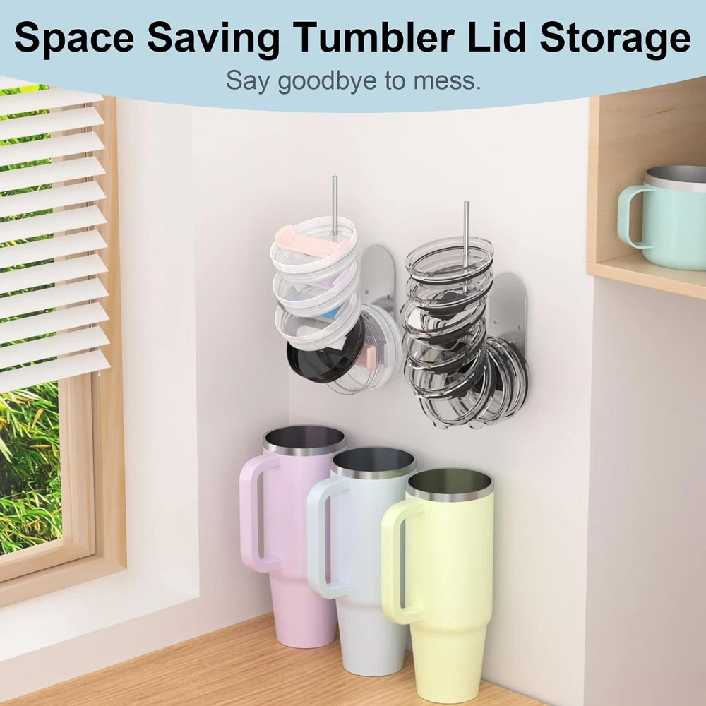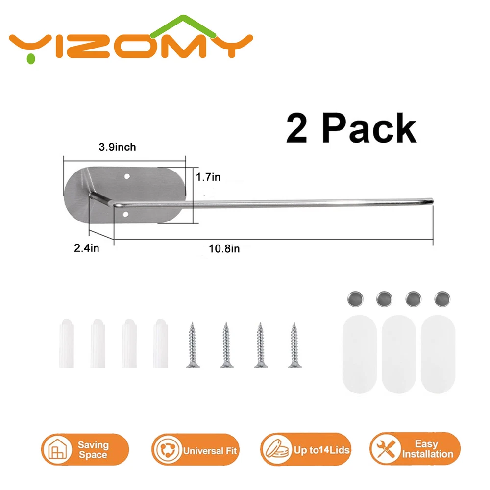 About this item [Self-adhesive design] --- The space-saving design of the 2-pack Lid Organizer comes with convenient self-adhesive installation, saving desk space while avoiding installation damage to furniture. [2-Installation Method] --- Product accessories include hardware accessories screws and self-adhesive glue. You can choose different installation methods on any flat surface [Multipurpose] --- Fits any size glass lid. Its stackable design makes it easy to store and organize glass lids of various sizes [Maximize space] --- Stylish and simple stainless steel material saves every inch of desktop space, [Compatible] --- Holds a variety of glass sizes and brands, say goodbye to lid-hunting chaos and say hello to a streamlined, more enjoyable kitchen experience. Cup lid storage to help organize messy kitchen space Modern design style Multiple installation methods, self-adhesive or screws Suitable for installation on various surfaces Specification: Material: Iron/anti-rust treatment Colour: Black / Sliver Size :L*W*H (5.7*1.77*3.94)Inch/ (10.8*1.8*3.9)Inch Weight: 220g/250g Package includes: 2* Cup lid organizer (including hardware accessories) On Mar 28, 2024 at 08:19:41 PDT, seller added the following information: