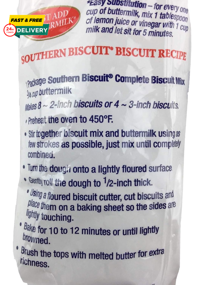 Menu Other Items Feedbacks About Us Contact Us Add To Favorites 2 Pack of Southern Biscuit Formula L Biscuit Mix, 7 Ounce Authentic Southern Taste: Enjoy the rich, buttery flavor of classic Southern biscuits with this biscuit mix formula. Versatile: Can be used to make biscuits, shortcakes, cobblers, and more delicious baked goods. Easy to Prepare: Just add milk or water to the pre-mixed dry ingredients for quick biscuit batter. Generous Portions: Each 7-ounce pack makes multiple servings of fresh, homemade biscuits. Convenient 2-Pack: Stock up with this twin pack of Southern Biscuit Formula L Biscuit Mix. Indulge in the delightful taste of homemade biscuits with this 2-pack of Southern Biscuit Formula L Biscuit Mix. Each 7-ounce package contains a carefully crafted blend of ingredients, allowing you to whip up light, fluffy, and buttery biscuits with ease. Whether you're preparing a hearty breakfast or a comforting side dish, this mix ensures consistent results every time. Simply follow the instructions on the package, and in no time, you'll have warm, golden biscuits that melt in your mouth. Enjoy the authentic Southern flavor in the comfort of your own kitchen. Baking has never been more convenient or delicious. Item Specification Unit Count 7.0 Ounce Number of Items 2 Product Dimensions 6 x 4 x 2 inches; 14.08 ounces Package Weight 0.88 Pounds Item Weight 0.88 Pounds Units 7.0 Ounce Brand Ogefine Dimensions Shipping Returns Additional Info Product Dimensions: 4.0 inches x 6.0 inches x 2.0 inches. Weight: 0.88 lb Fast shipping is very important for us. Our standard shipping service is FREE. Your order will be shipped within 1-3 business days upon full payment received. Most items are delivered within 3-5 business days, however, please allow 3-10 business days. We are shipping only to USA. We only ship to the confirmed Paypal address. We reserve the right to cancel any order for any reason at any time. We are not responsible for undeliverable addresses. We offer a 30 day return policy from checkout winning date. Your satisfaction is guaranteed! If for any reason you are unhappy with your item, just return it within 30 days for a full refund, minus shipping cost. Please contact us prior to initiating a return so that we can issue you a refund authorization. Items defective upon receipt must be packaged in their retail packaging as if new and returned with a detailed description of the problem. Return shipping fees are not refundable. We reserve the right to decline any returns if the above guidelines are not followed. All of our items, unless otherwise stated, will only run on 120 volts. Please check to make sure your country complies with these specifications. If you have a problem or question regarding your transaction please contact us before leaving any type of feedback. We will work with you to resolve any problem you may have.
