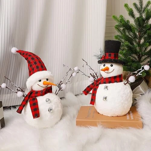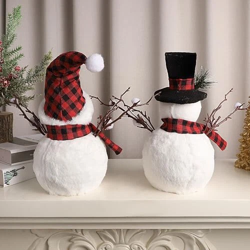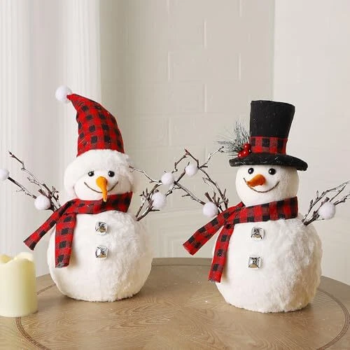 2 Packs Christmas Snowman Decorations, 15.4" H Snowmen Wearing Buffalo Check
