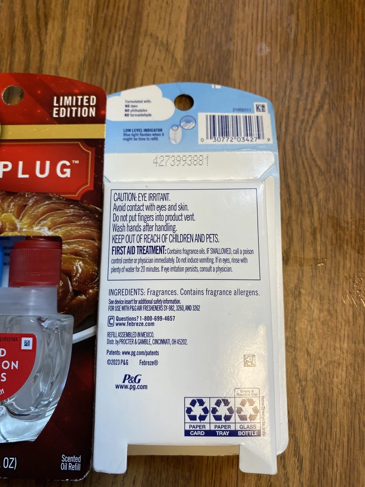 This product is a set of two packs of Febreze Plug refills in a Baked Cinnamon Apples scent, totaling four refills. Each refill lasts for 180 days and is designed for use in any room of a home or office. The refills are in a solid oil form and come in a purple glass bottle. The product features a deodorizing and odor-eliminating formula, making it eco-friendly. With a modern style, these refills are part of the Febreze product line and are suitable for providing a fresh and inviting scent to your living space.