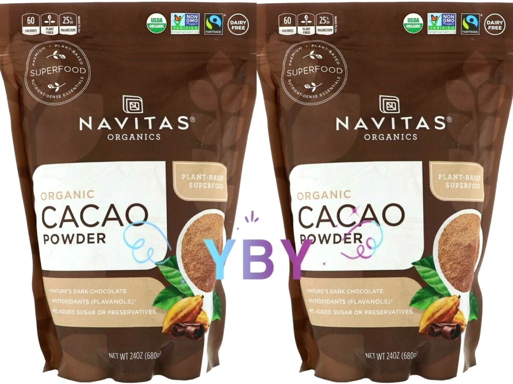 2 Packs Navitas Organics Organic Cacao Powder 24 OZ Each Pack USDA Organic Premium | Plant-Based Superfood Nature's Dark Chocolate Antioxidants (Flavanols)† No Added Sugar or Preservatives Kosher Gluten Free Vegan BPA Free Cacao: Fairtrade Certified and Sourced from Fairtrade Producers. Total 100% Replace Cocoa 1:1 From Unroasted Cacao Beans Homemade Mochas, Brownies & Cakes Pack of 2 (24 oz each pack) NET WT 24 OZ 680 G EACH PACK Feel free to ask any questions regarding to this item