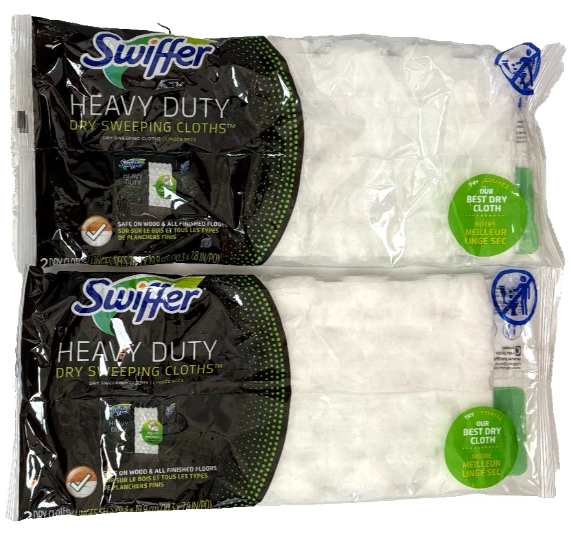 2 Packs Swiffer Heavy Duty Dry Sweeping Cloths Deep Pockets Total 4 Dry Cloths New in package Safe on wood and all finished floors PLEASE ASK ANY QUESTIONS BEFORE BUYING SHIPS PROMPTLY UPON RECEIPT OF PAYMENT SMOKE FREE HOME THANK YOU.