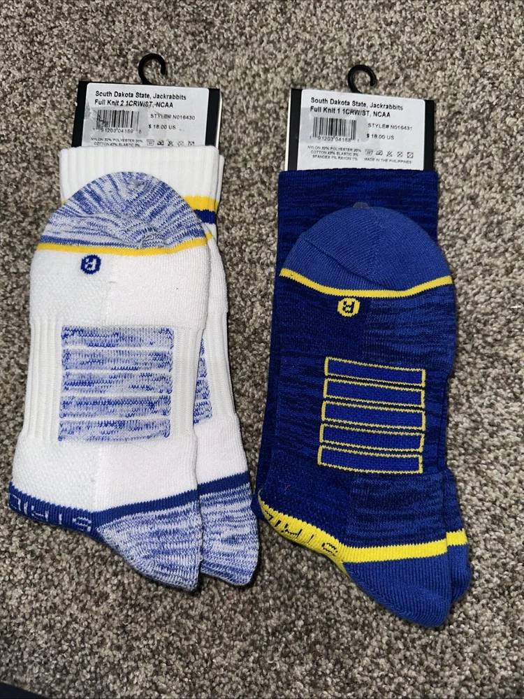 2 Pair NEW - SOUTH DAKOTA STATE Strideline Crew Socks - Mens M/L (8-12) NCAA