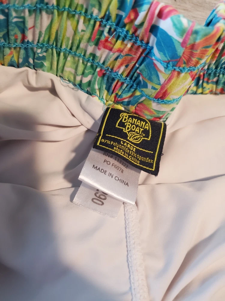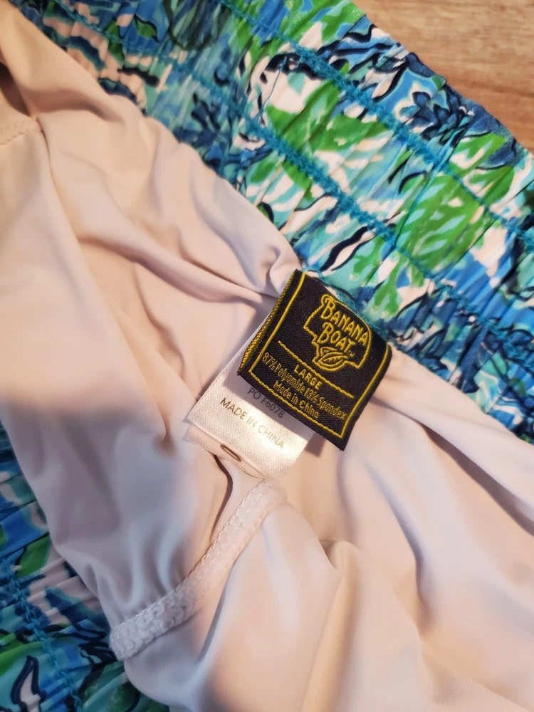 The product is a set of 2 pairs of Banana Boat Girls Large Floral Tropical Butterfly Shorts in blue, size 12-14. These shorts feature a fun and vibrant butterfly design, perfect for a casual summer or spring occasion. Made by the brand Banana Boat, they are machine washable and have a regular fit. The multicolored floral pattern adds a touch of tropical flair to the style, making them a bright and stylish choice for young girls looking to stand out in their summer wardrobe.