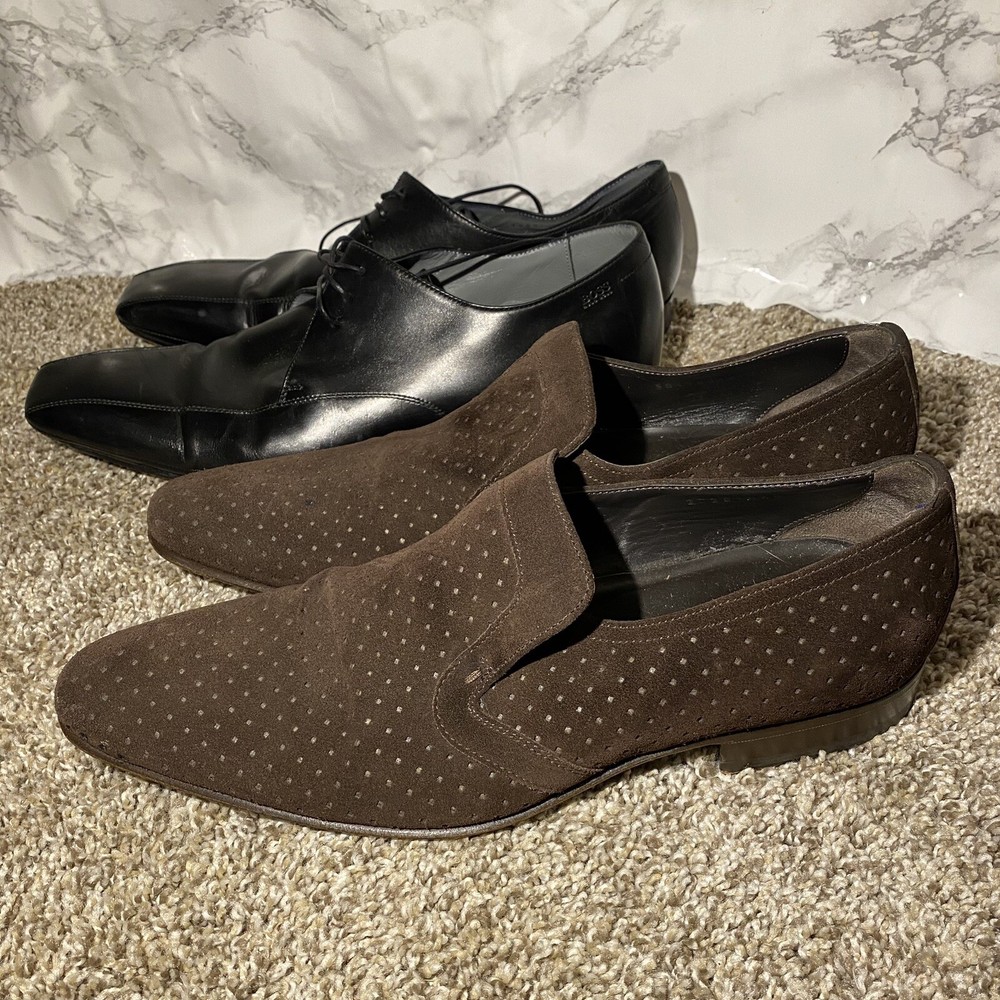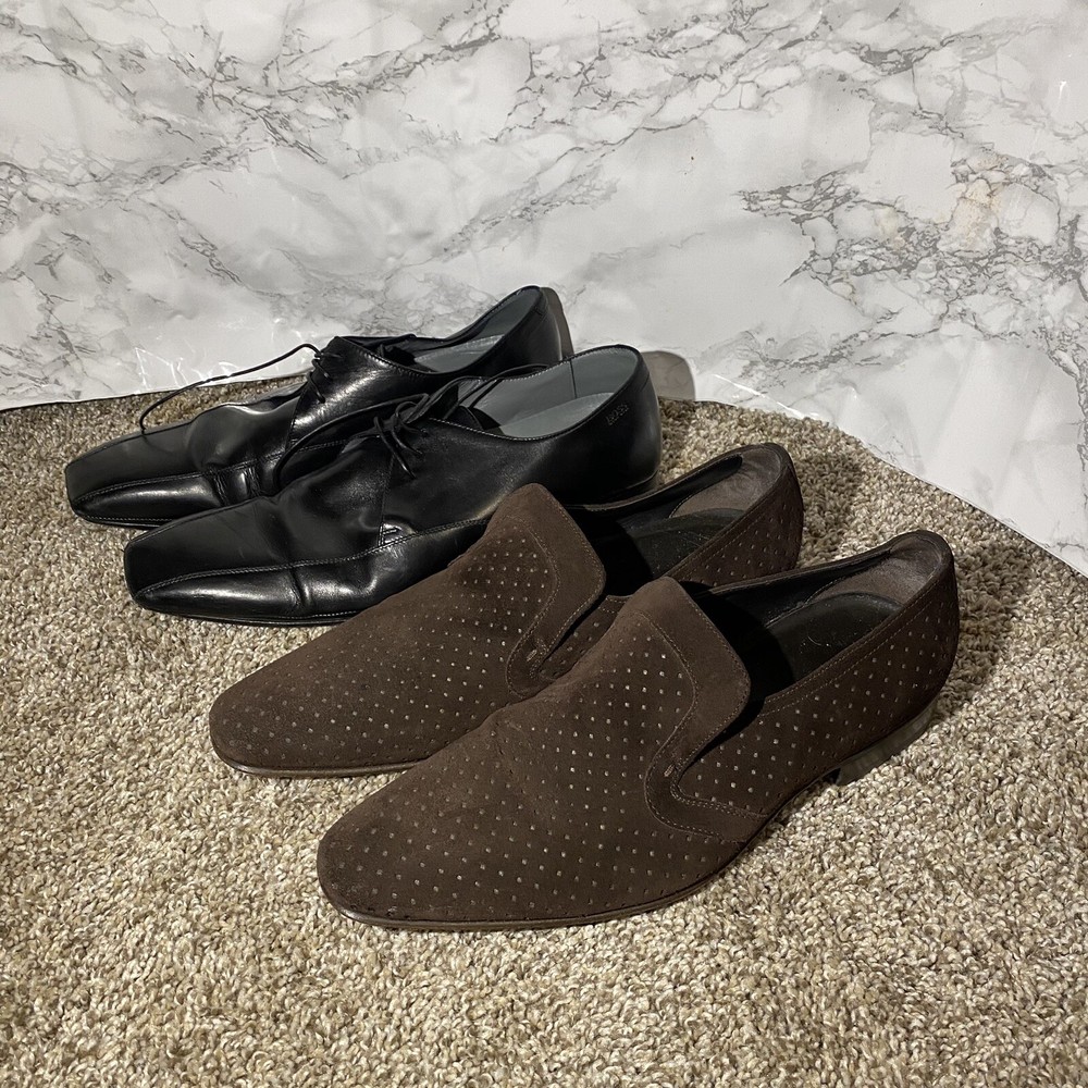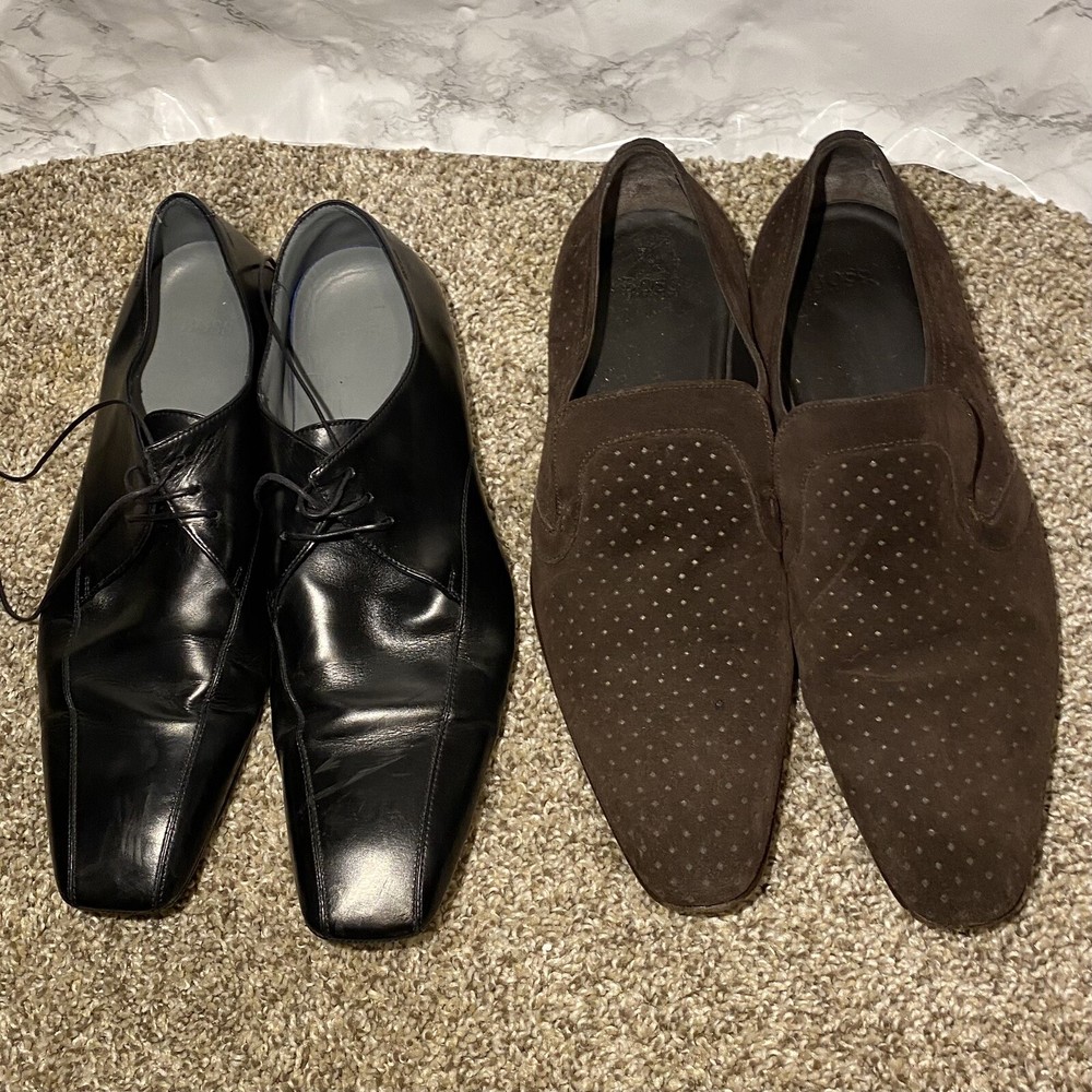2 Pairs Hugo Boss Men's Black Brow Square Toe Oxford Derby Dress Shoes 7.5