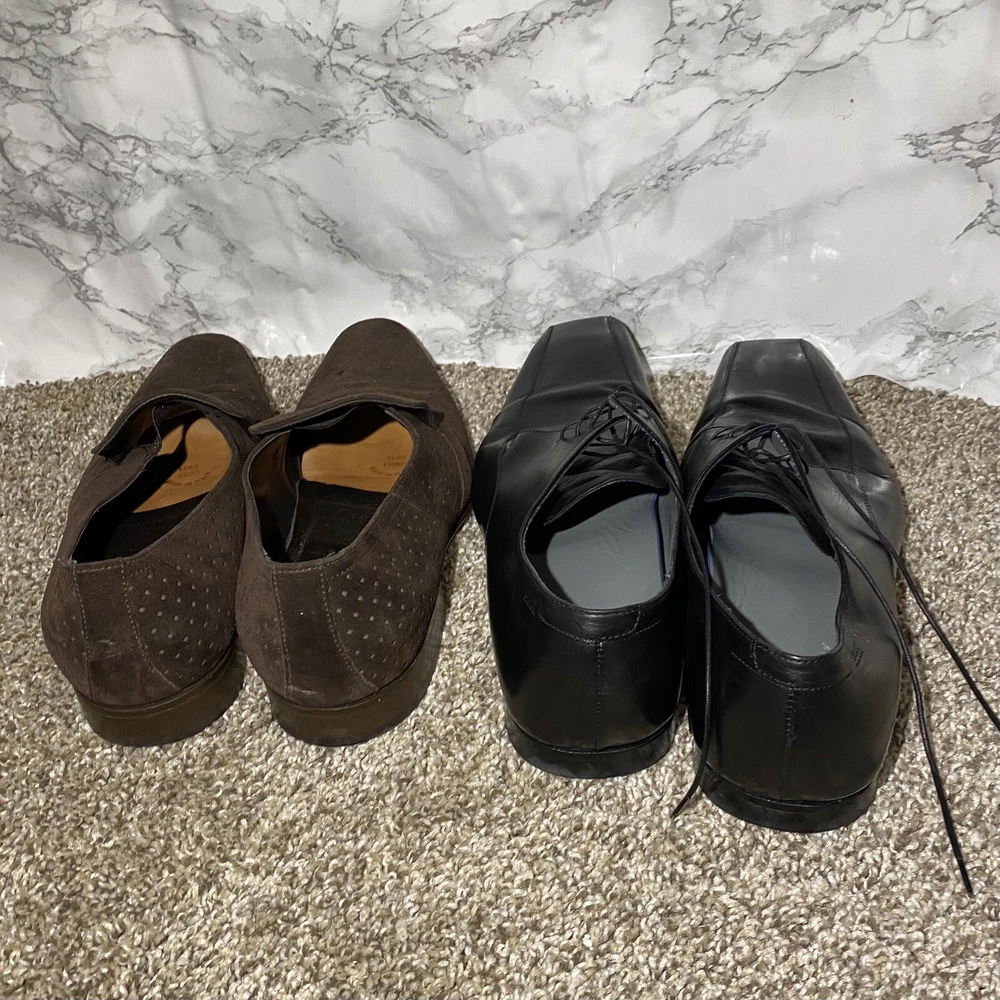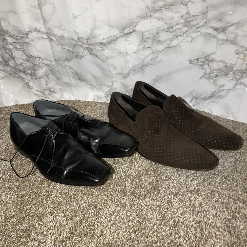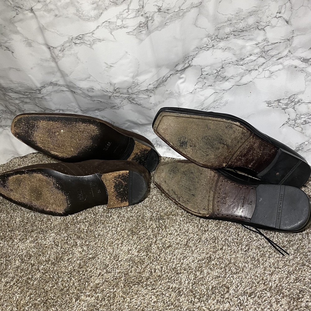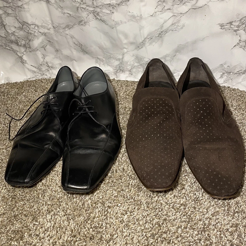 2 Pairs Hugo Boss Men's Black Brow Square Toe Oxford Derby Dress Shoes 7.5