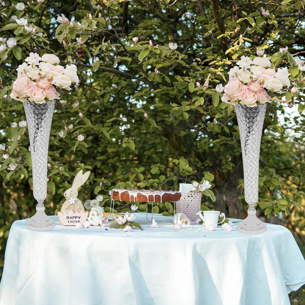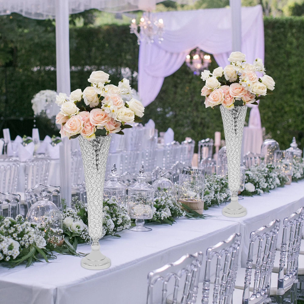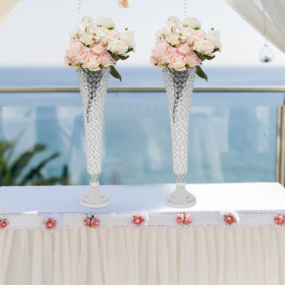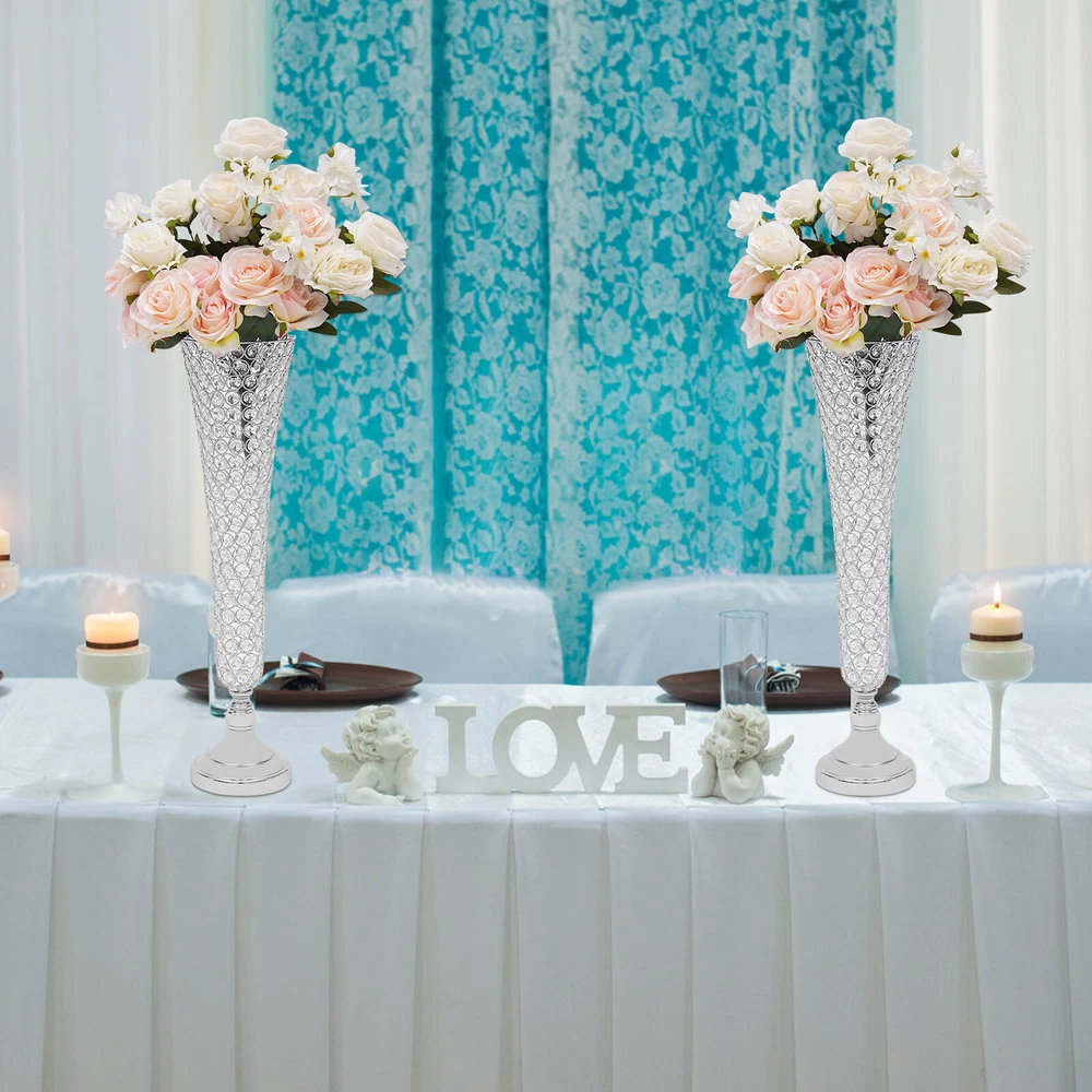 2 Pc Crystal Trumpet Flower Vase Wedding Stage Decoration Vases Rack 53cm Tall Description This vase is perfect for young newlyweds with personality and fashion, placed in the wedding venue to highlight the sense of fashion and art in the entire interior. Light gently sprinkles on the vase, and a burst of soft light makes the whole wedding scene more noble and elegant, adding a touch of festive and happy atmosphere to the wedding. Specification Color: Silver Shape: Trumpet Style: Modern Material: Iron Surface Treatment: Electroplating Treatment Number of Pieces: 2 Use Form: Desktop, Floor-standing Product Height: 53cm/ 20.86in Opening Diameter: 17cm/ 6.69in Base Diameter: 13.5cm/ 5.31in Package Size: 49*19*25cm/ 20*7.5*10in Net Weight: 4.5kg/9.9lbs Gross Weight: 5kg/11.0lbs 2 Pc Modern Crystal Trumpet Flower Silver Stand Crystal Vase For Wedding Decor 2 Pc Crystal Trumpet Flower Vase Wedding Stage Decoration Vases Rack 53cm Tall Description This vase is perfect for young newlyweds with personality and fashion, placed in the wedding venue to highlight the sense of fashion and art in the entire interior. Light gently sprinkles on the vase, and a burst of soft light makes the whole wedding scene more noble and elegant, adding a touch of festive and happy atmosphere to the wedding. Key Features Modern and Elegant : Each crystal trumpet floral vase is made of selected high-quality octagonal crystal beads. They still sparkle in the sunlight. It creates stunning colors and shades and is the ideal candelabra centerpiece wedding decoration. Premium Quality : It is made of high-quality iron material with an electroplated surface, so it has good weather resistance . It will not change its performance or shorten its service life due to the harsh environment. DIY Fun: You can put different decorations on the silver vase for different occasions, such as artificial flowers, fresh flowers, bouquets, feathers, etc to create your own decorations with endless imagination and elegant taste . Easy to Clean: Its electroplated smooth surface and highly clear crystal make it easier to clean. You just need to wipe it with a soft dry cloth to make it look new. Light Weight: These vases are moderate in weight (9.9lbs), allowing you to easily move to where you want to place them. Easy to Assemble: It's simple to construct and the package contains the parts needed for installation, so you only need a few simple steps to put them together. Two in a Package : The package comes with two vases that can be placed symmetrically exactly where you want them. Therefore, you don't need to buy extra, which is very affordable and convenient. Customer Service: We aim to provide quality products and services. If you have any problems, please feel free to contact us. We will reply and solve the problem for you as soon as possible. Specification Color: Silver Shape: Trumpet Style: Modern Material: Iron Surface Treatment: Electroplating Treatment Number of Pieces: 2 Use Form: Desktop, Floor-standing Product Height: 53cm/ 20.86in Opening Diameter: 17cm/ 6.69in Base Diameter: 13.5cm/ 5.31in Package Size: 49*19*25cm/ 20*7.5*10in Net Weight: 4.5kg/9.9lbs Gross Weight: 5kg/11.0lbs Package Included 2* Flare-shaped Vase Bodies 2* Bases 3* Non-slip Mats Other Accessories for Assembly Details Trumpet-shaped Opening : The mouth of the trumpet-shaped vase is propped outward with a lot of placement space, even a bouquet with larger petals like lilies can be fitted in. Crystal Bead Splicing Design: The vase is made of several finely crafted crystal beads spliced together in a natural form with a clear visible pattern. Round Base: The enlarged round base (5.31in) design makes it stable and not easy to shake and tip over. Application It can be used in everyday decoration for the kitchen, living room, bedroom, office, balcony, etc. It can also add sparkle to your wedding banquets, proms, baby showers, anniversaries, Valentine's Day and other important events. Installation 1. Connect the tooth bar with the accessories. 2. Fix the base with nuts. Notes Please note that the flowers in the picture are not included. Please allow the slight color difference caused by the shooting light and 1-3 cm error due to manual measurement, and make sure you do not mind before ordering. Payment Delivery details Terms of sales About us Contact us Payment We accept ebay payment 。 Fees such as import duties, taxes are not included in the item price or shipping costs. These charges are the buyer's responsibility. Delivery details Shipping: 2-9 working days to: USA Terms of sales We maintain high standards of excellence and strive for hundred percent customer satisfaction. Feedback is very important to us. We hope that you contact us immediately before you give neutral or negative feedback, so that we can address your concerns. It is impossible to address issues if we do not know about them! About us Your satis faction is our ultimate goal. We work hard to earn your trust and future business. Our certified technicians have tested each item before shipping. The unit comes with 1 year limited warranty on all manufacturing defects. a) If you receive a defective item, you may return it or ask for a discount. Please contact us within 14 days after you receive the package. b) What you returned must be intact and in its original packaging as re? u. Customer is responsible for shipping costs of the returned item. c) We will cover the cost of shipping back t with the shipping rate indicated in the registration page. We will send you a new unit or refund the full payment you paid. Thank you. Contact us Business Hour Business Hour: Monday To Friday: 8:30 AM to 5:00 PM (Beijing China time) Due to time zones, our reply to your questions may not be immediately. But within above working time, we will reply your email within 24 hours. If it's non-workdays, please kindly be patient and wait till Monday. Please contact us with ebay message. Please feel free to contact us if you have any
