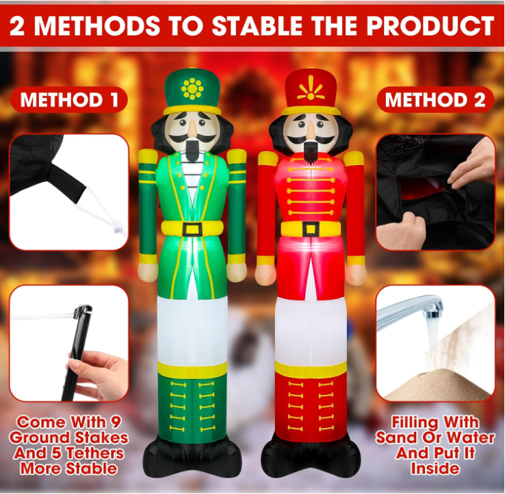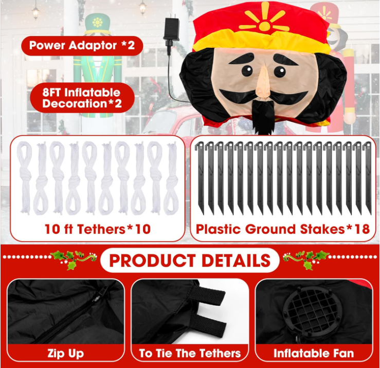 2 Pcs 8FT Christmas Inflatables Nutcracker 2025 NEW LED Outdoor Decoration Decoraciones navideñas: Recibirás 2 soldados inflables navideños de Cascanueces de 2,4 m en diferentes estilos, ideales para decoraciones navideñas gigantes. Cada uno incluye soplador, adaptador, estaca y cuerda. Incluye luces LED integradas para crear un ambiente festivo cálido y luminoso. Ilumina tu Navidad: Este soldado inflable de Cascanueces cuenta con cuatro brillantes luces LED en su interior para crear un espectáculo de luces nocturno. Las decoraciones inflables navideñas iluminadas son ideales para exhibir en tu jardín y cautivarán a tus invitados y vecinos. Fácil de usar: Esta estaca de Cascanueces iluminada se infla automáticamente con un ventilador integrado de 1 A y un adaptador de 1,25 A. Simplemente conéctala y se inflará por completo en minutos. Cierra la cremallera inferior para evitar fugas de aire. Para guardarlos, puedes desinflarlos rápidamente y guardarlos de forma compacta. Material de calidad: Soldado de Cascanueces navideño con tela de poliéster impermeable. Es ligero, impermeable, resistente a la intemperie, resistente a la decoloración y bien cosido, por lo que nunca tendrá que preocuparse por rasgaduras o agujeros; Los cascanueces inflables, las estacas y las cuerdas están hechos de materiales más resistentes y duraderos, y crearán un punto focal festivo en su patio delantero o trasero y un ambiente alegre alrededor de su familia. Decoración versátil: esta decoración navideña inflable gigante se puede aplicar en patios, aceras, puertas, jardines, céspedes, decoraciones navideñas para el hogar al aire libre y más, además de ser un regalo de Navidad ideal para amigos, familiares y colegas. SHIPPING: We offer FREE shipping on all orders! We ship within Three business days of payment, usually sooner. We use a selection of shipping services such as UPS, FedEx, USPS etc. We only ship to the lower 48 states, no APO/FPO addresses or PO Boxes allowed. Local pickups and combined shipping options are not provided at this time. PAYMENT: We accept payment by any of the following methods: PayPal Please pay as soon as possible after winning an auction, as that will allow us to post your item to you sooner! FEEDBACK: Customer satisfaction is very important to us. If you have any problem with your order, please contact us and we will do our best to make you satisfied. Thank you for shopping with us!