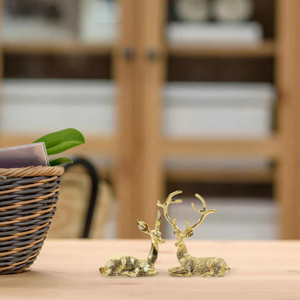 2 Pcs Decor Deer Couple Statue Ornament Animal Christmas Ornaments