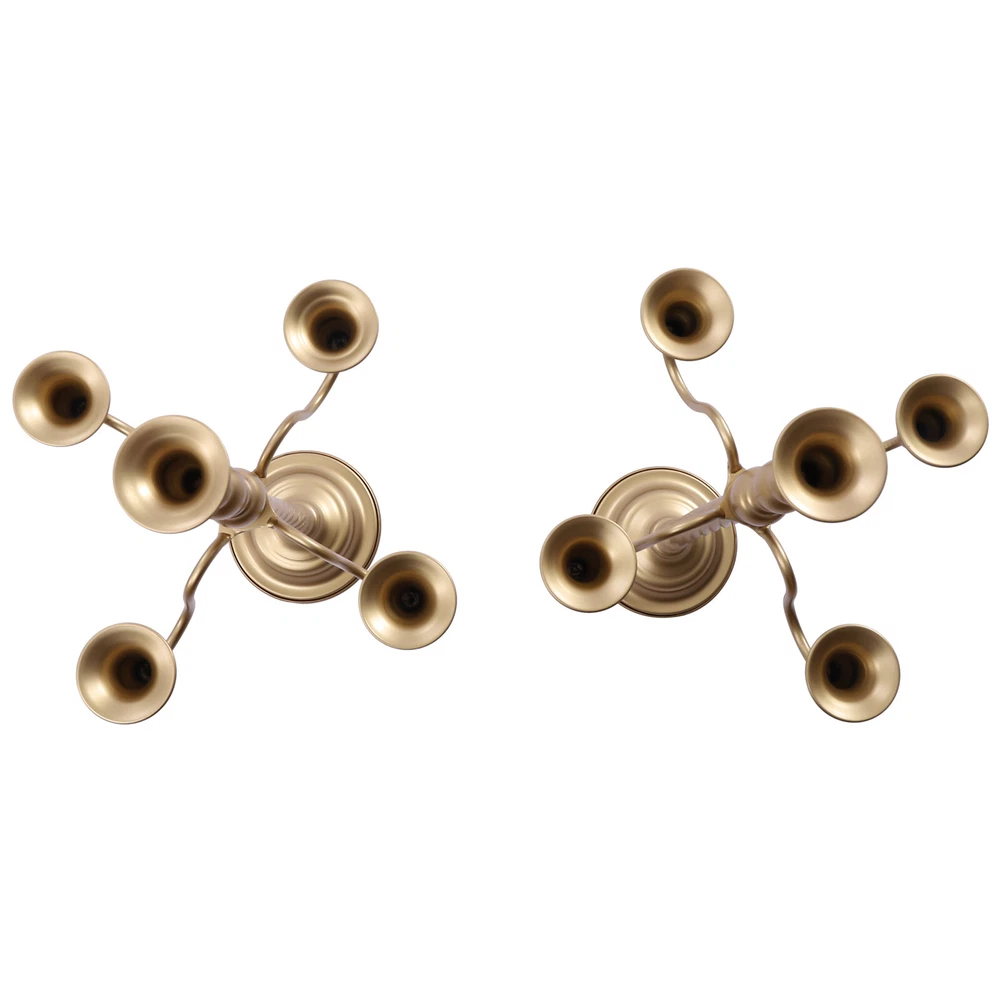 Pair of Golden Colored Wall Hanging Sconces Candle Holders