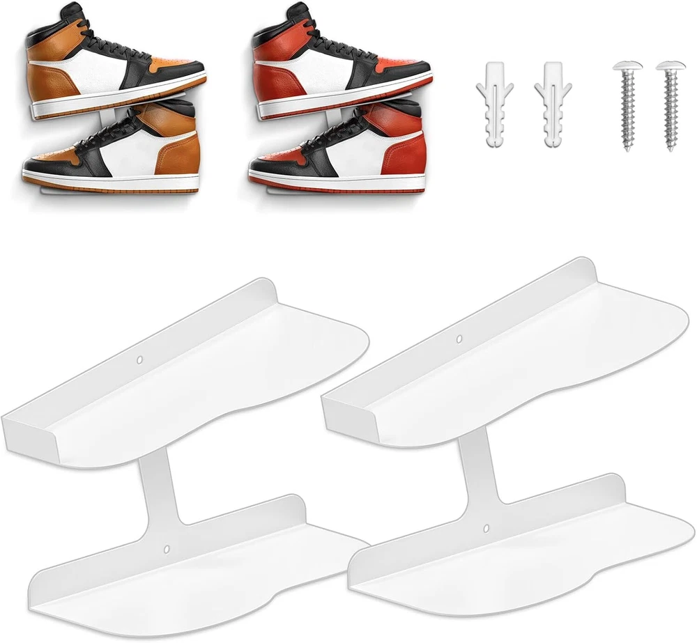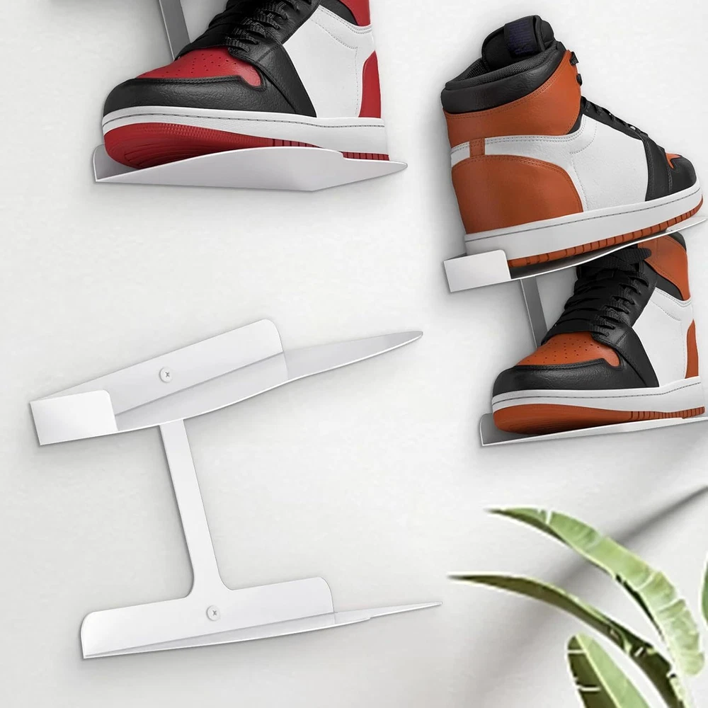 Stylish and Slimple Design: Shoe display high quality and sturdy iron material can safely suspend our beloved shoes and make our shoes become artwork on the wall, H-type up and down shoe rack design can neatly and orderly display the shoes in different angles and maximise the use of wall space. Your friends will be fascinated by your new trainer collection unit Professional Design: Floating shoe display the front end of the shoe rack is widened to increase the contact area between the soles and the rack, which is compatible with shoes of more sizes (6-13). h-shaped shoe rack, divided into upper and lower storage, the upper panel is upturned by 20°, Shoes with a toe not exceeding 3.74" and a heel not exceeding 6.5" and an anti-slip stopper is designed at the heel to prevent it from slipping off, and the lower panel is a straight line design, which allows us to display our shoes at different angles. Quality Materials: The wall suspended shoe rack is made of high quality iron welding process, the whole body is made of iron, sturdy and durable, smooth and rounded edges, beautiful and durable, suitable for all standard sports shoes / different sizes of shoes Easy Installation: Shoe shelf for wall box contains 1 black shoe wall shelf, 2 screws and 2 dowel pins, and detailed installation instructions, so you can get a perfect suspension shoe mount in minutes Suitable for all kinds of walls: Floating shoe shelvescan be easily used in shoe collection showroom, shoe shop exhibition, living room, bedroom, game room, dormitory, corridor and other scenes. If you pay attention to quality and style, our suspended shoe rack will be your best choice