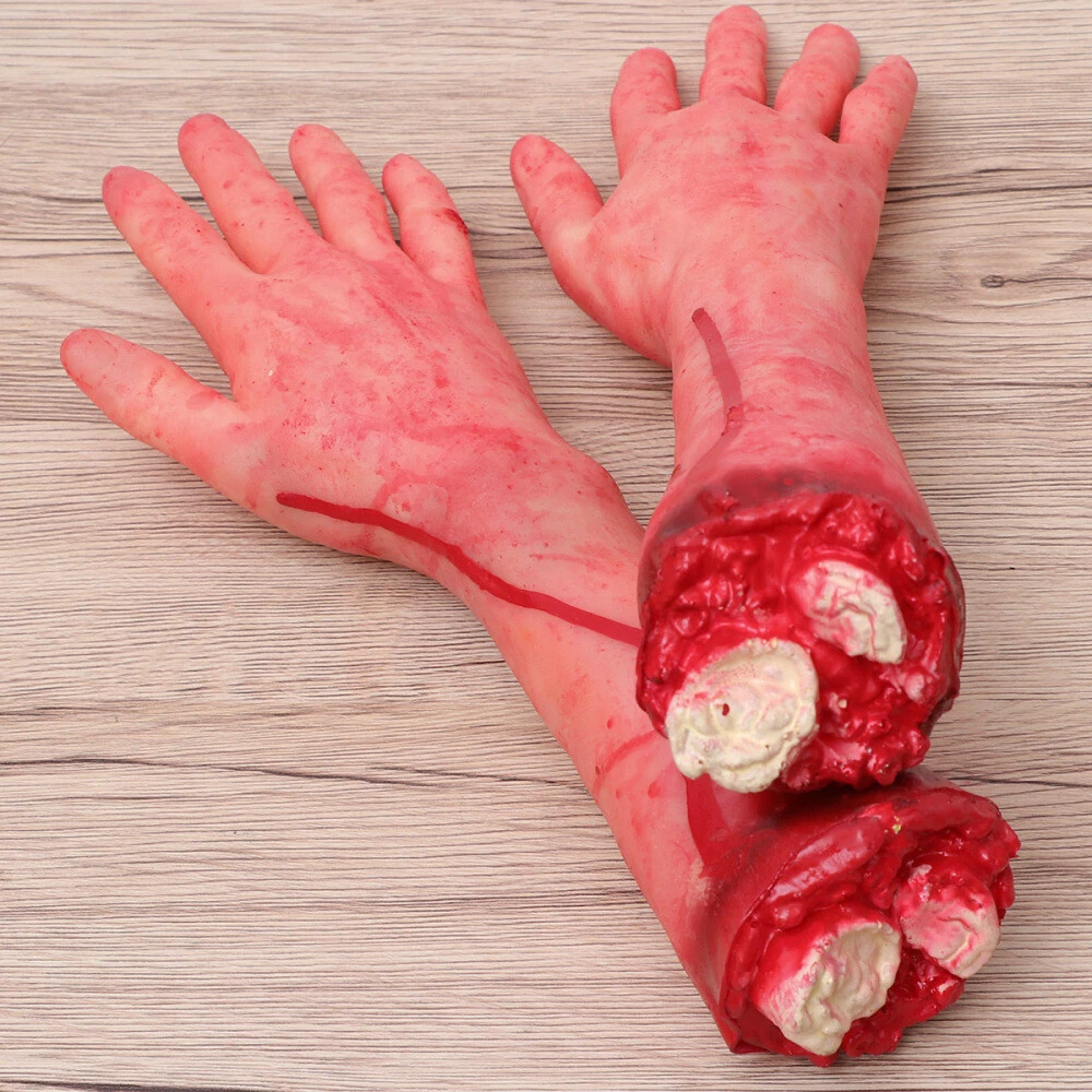 2 Pcs Hand Fake Body Parts with Blood Halloween Decoration Props Baby