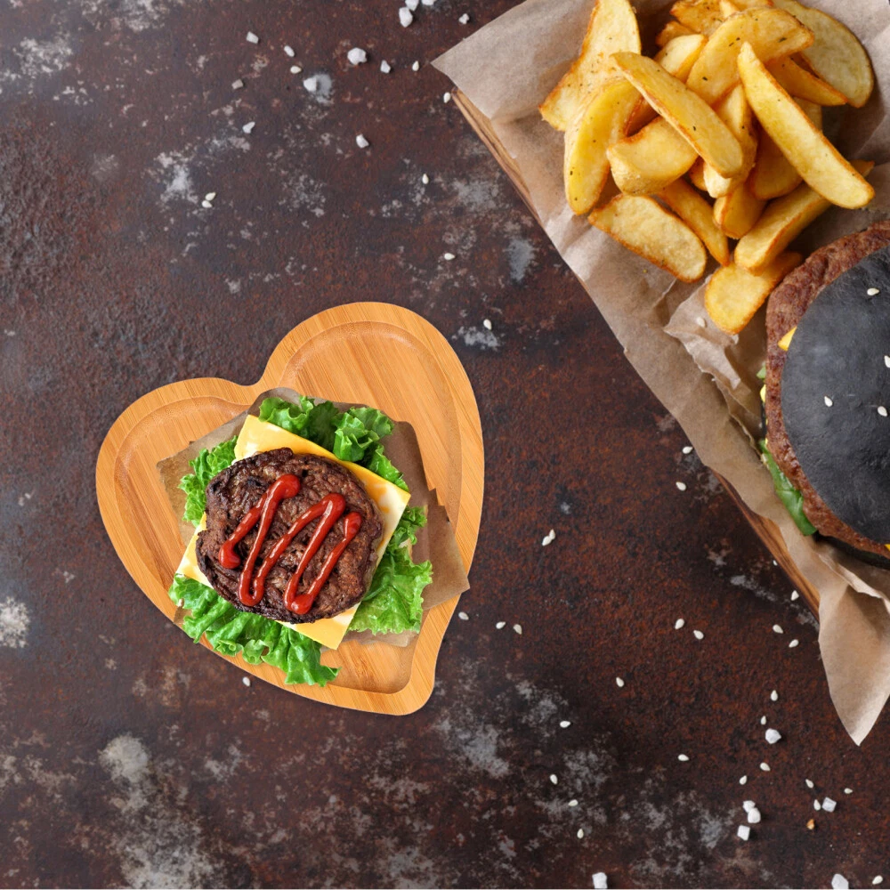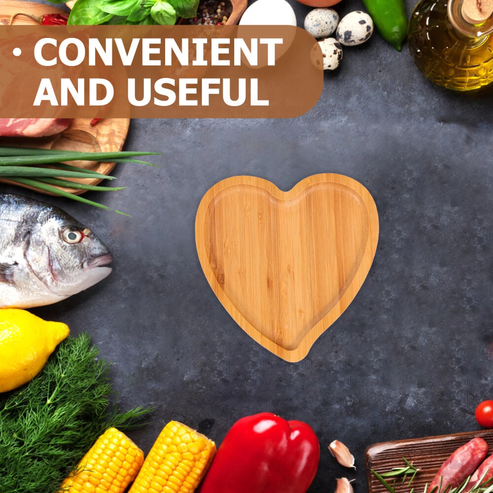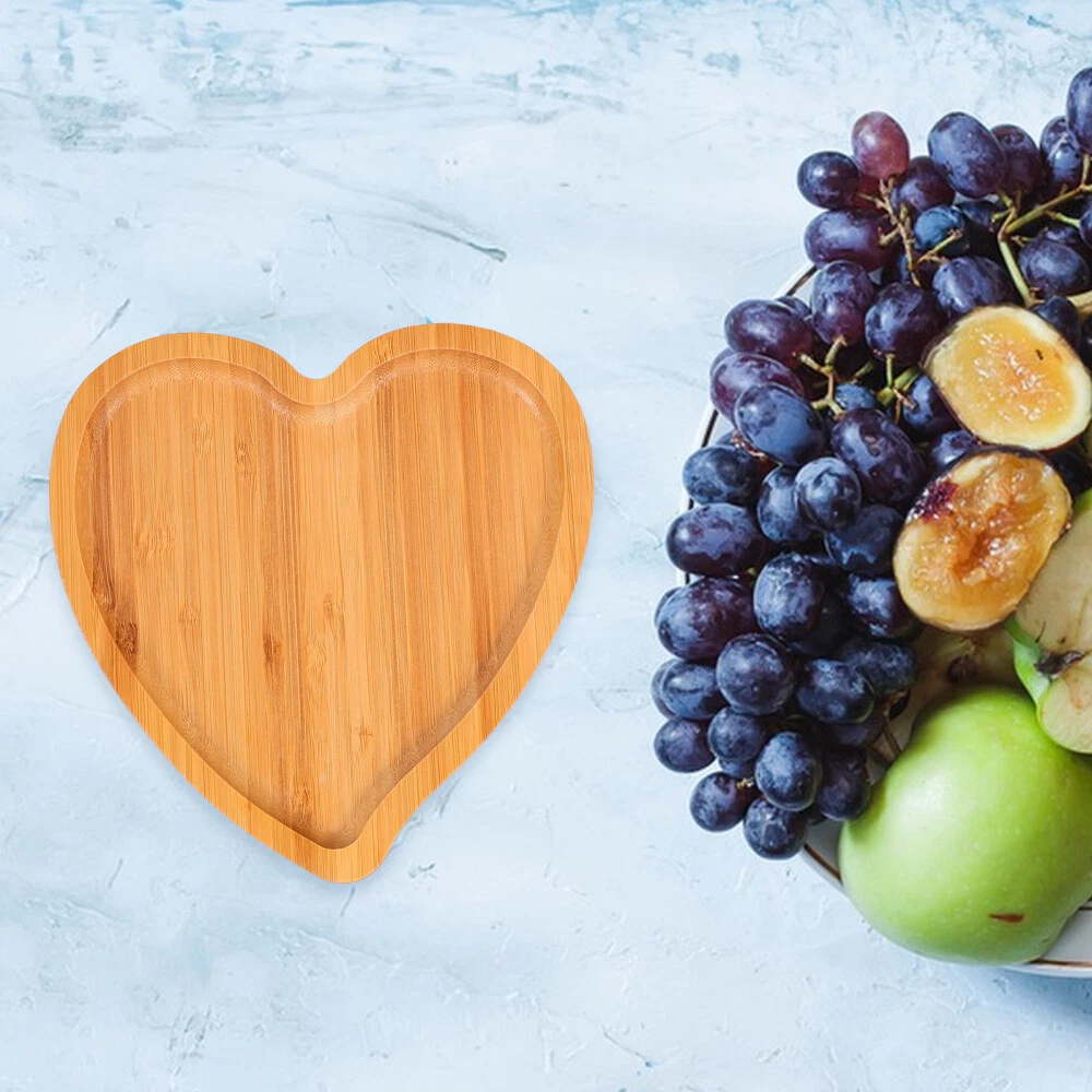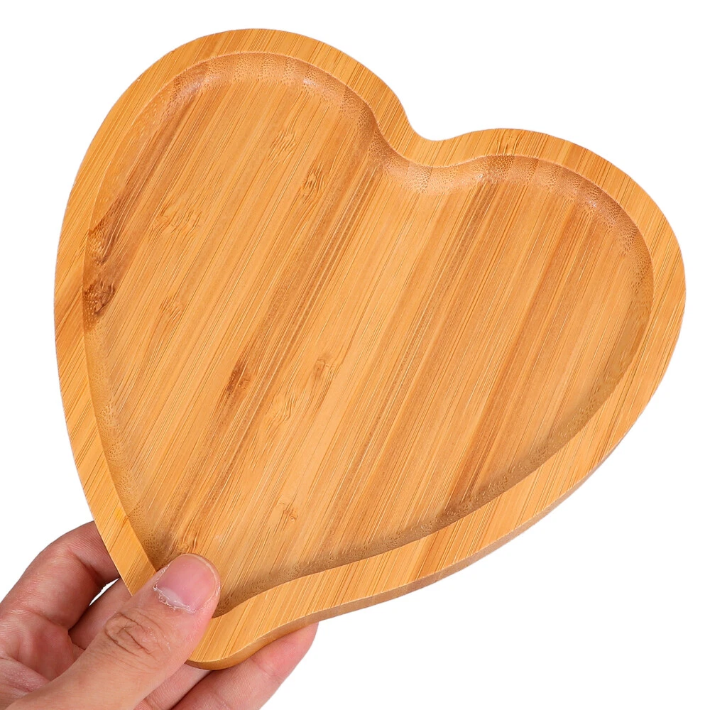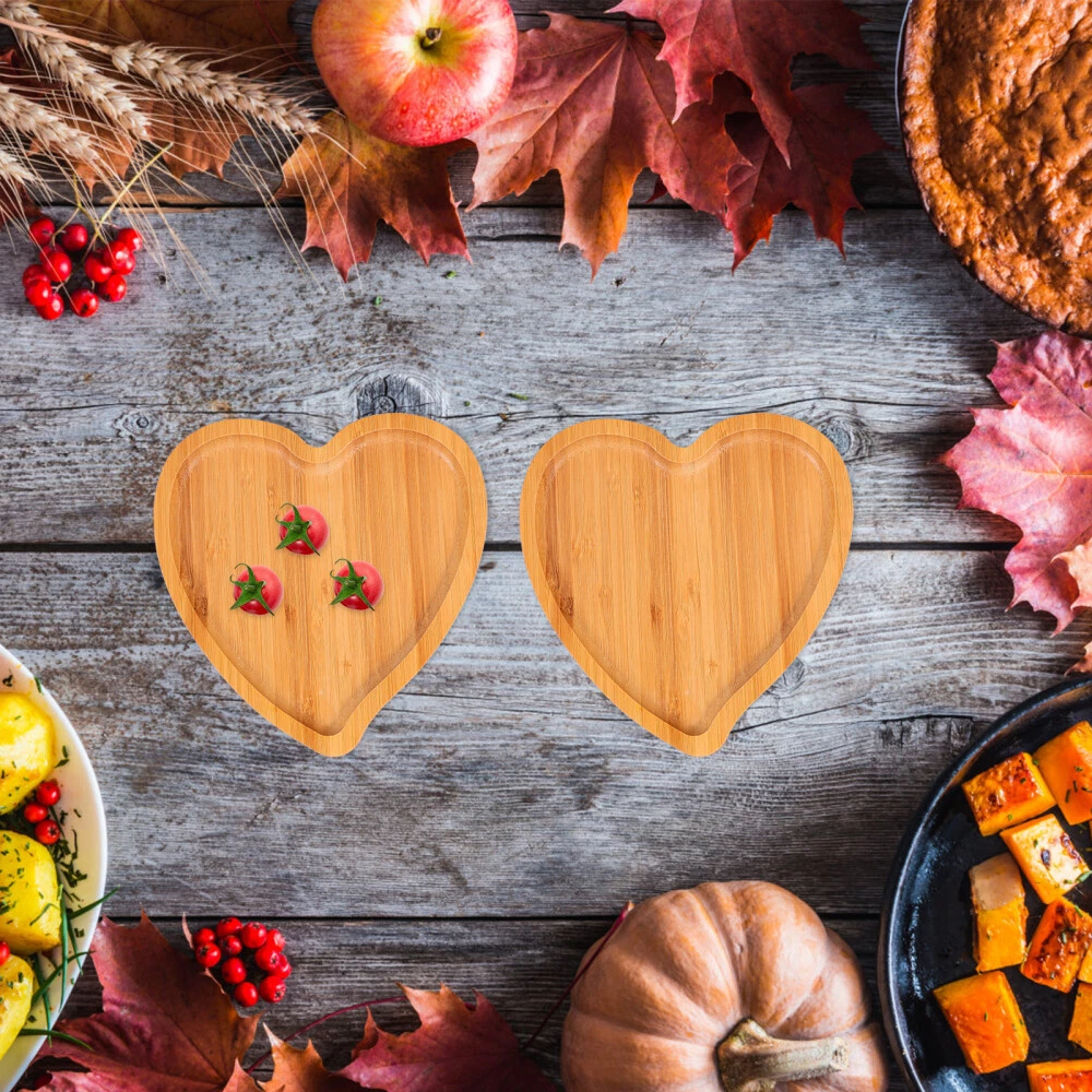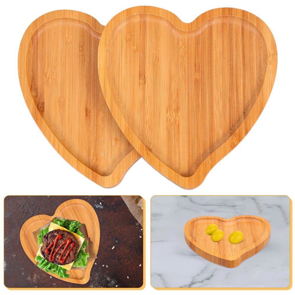 2 Pcs Heart Shaped Tray Wood Shapped Plate Pan Eco- Platter