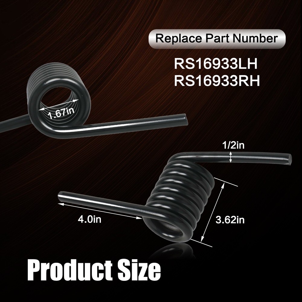 Store Home New Arrival Ending Soon Add to Favourites View Feedback Contact us Why Buy From us Items Description High Quality Fast & Free Shipping From US Easy to Install Product Description: 【Product Size】:Our Trailer Coil Springs have 7 coils of springs,4" Long Ears,1/2" Steel Round Bar, Fits over a 1.5" Diameter Shaft. 【Heavy Steel Material】:Heavy Duty Trailer Ramp Springs are made of high-quality heavy-duty steel material and undergo multiple high-temperature forging processes. The springs have strong and durable elasticity, are not easily deformed, and have a long service life. 【High Torque, Flexible Deflection】:The torque of the trailer coil spring is 2000Lb, with a 90 degree pf deflection, making it easier to raise and lower heavy trailer ramps. 【Trailer Ramp Spring Application】:Trailer ramp spring replacement part numbers RS16933LH and RS16933RH, these trailer springs are designed to help lift and lower heavy-duty trailer ramps, making them an ideal choice for trucks and trailer doors. 【Note】:The packaging includes 2 pair of heavy-duty trailer coil springs, with torsion springs twisting in different directions. If the ramp lifting spring is damaged, it will shorten the service life of the spring. Timely replacement of the trailer ramp torsion spring can eliminate the risk of damage caused by the collapse of the ramp gate, and even harm personal safety. Note: 1.If you are unsure of the item, please contact us before buying to avoid unnecessary return. 2.Communication is the best way to solve the problem. If you have any problems after purchasing, please contact us in time, before opening return or case. 3.Please Check the Part Number and Compare with Pictures Provided Carefully Before Purchasing to Ensure It Is The Correct Product You Need, Any Questions Please Contact Us. Package Included: 2 Pair Heavy Duty Trailer Ramp Springs as the Pictures Show. Delivery details Payment Terms of sales About us Contact us Delivery details Usually, Item will be shipped within 1 working day after full payment is received. Normally, you will receive the item in 5-7 days. Please contact us if you don’t receive the items after 8 working days after the payment. We ship the item to the given address in your order. Please make sure the address in your order is correct. Any non-received item caused by invalid address that left in your order is not in our full refund or replacement policy. Payment We accept multi way of payment, such as PayPal, Apple pay, credit card etc. After you place the order, please finish the payment a.s.a.p. Terms of sales The buyer has 30 days to return the item for refund or replacement. The shipping fees will be on seller or buyer according to the reasons of the returned purchase. The returned product must be under resalable condition and with original package. About us We are a professional worldwide wholesale auto parts company. We specialize in auto accessories for cars, trucks, motorcycles, ATV, UTV, ships, speedboats, furniture and gardening (lawn mowers, fellers, chainsaws, generators, car washers, etc.)Our professional team dedicated to provide high quality products for the most competitive prices and excellent service! Contact us If there is any question or problem, please feel free to contact us by eBay message, normally we get back to you within 24 hours, with our professional team we will provide the best service that we can. Copyright © 2023, Brotherauto-parts All Rights Reserved