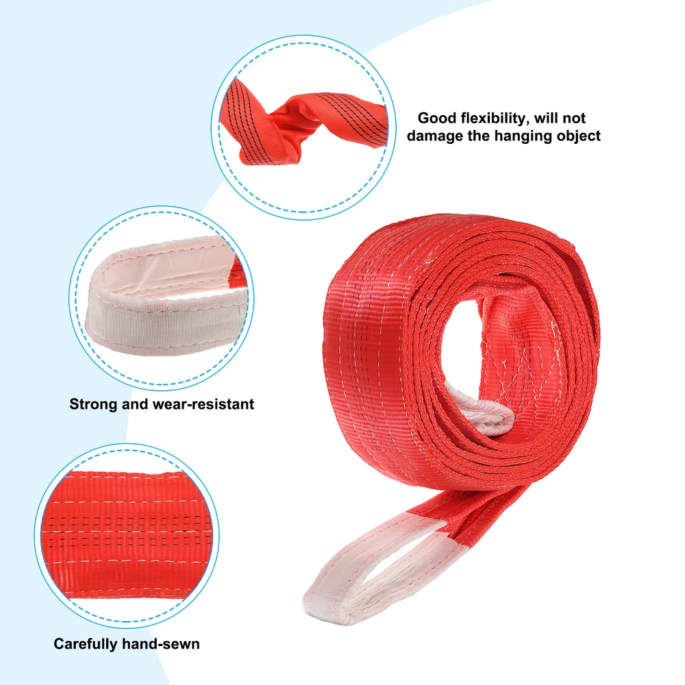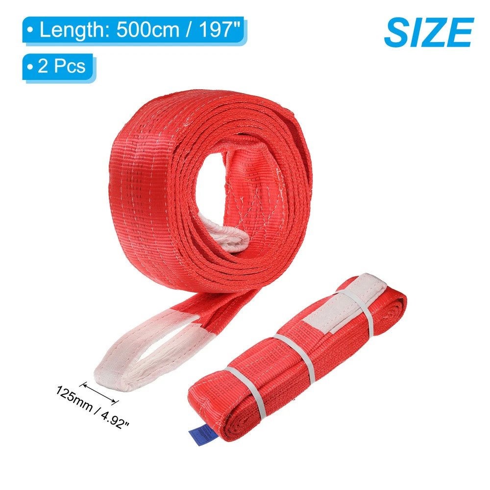 2 Pcs Lifting Slings Straps Polyester 16ft Flat Lifting Belts(11023lbs) Red