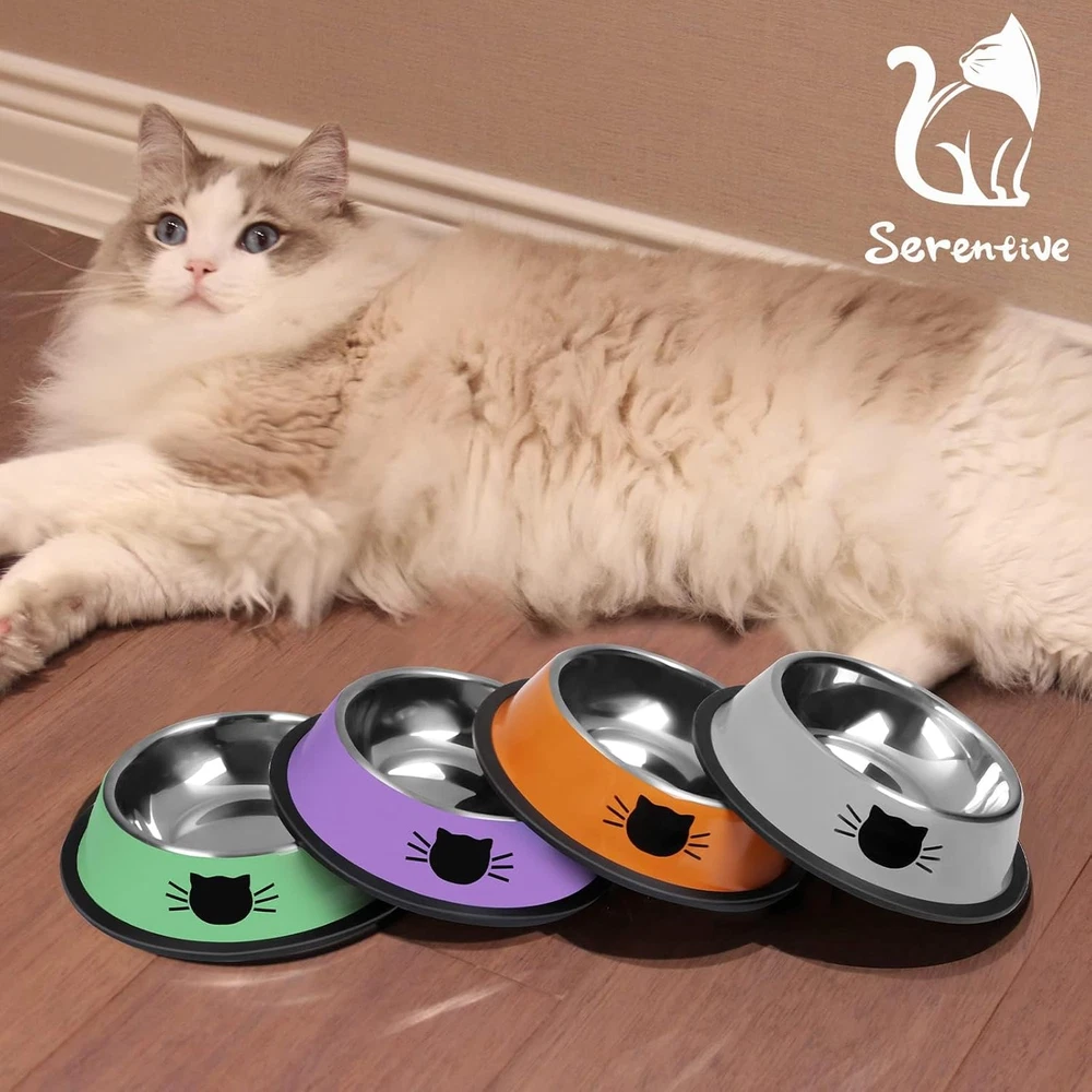 Store New Arrivals Add to Favorite View Feedback 2 Pcs Non-Slip Stainless Steel Small Cat Food Bowls - Unbreakable, 7 Oz, Removable Rubber Base, Easy to Clean, Lovely Color Description Item model number SerDe701 Age Range Description All Life Stages Style cat bowls Material Stainless Steel Number of Items 2 Item Dimensions LxWxH 6.3 x 5.91 x 1.97 inches Color Silver Included Components Stainless Steel Cat Bowl Care Instructions Hand Wash Only Item Weight 7.05 ounces Product Dimensions 6.3 x 5.91 x 1.97 inches; 7.05 ounces Target Species cats, dogs, kitten, kitty Target Audience Keyword house-cats Recommended Uses For Product Indoor, Multiple Pets Special Feature Durable, Nonslip Specific Uses for Product Indoor, Multiple Pets, Outdoor Item Package Dimensions L x W x H 6.54 x 6.14 x 2.01 inches Breed Recommendation Small Selected Sturdy Valuable Stainless Steel: Premium-quality and BPA-Free material ensures cat bowl will not be deformed whether your cat or puppy bites or plays. Application of superb polishing technology keeps stainless steel cat bowls is produced clean with a longer product life cycle. Stainless steel cat bowls for food and water. Non-slip and Removable Rubber Base: The specially modulated rubber ring makes the cat dishes have strong friction, ensuring that cat food bowls for indoor cats will not tip over and keep stable when your kitten or puppy is eating. The rubber ring can be easily removed from the pet food bowl before cleaning. This cat food and water bowl set effectively reduce the noise and slipping during eating, also achieve effect of protecting home wooden floor from scratching. Various Color Choices: Preparing such a cute and personalized cat dog bowl set is the first important step in establishing good eating habits for your lovely pets. Colorful cat food bowls for indoor cats suit for different home decorations and also increase your pet's appetite. Cost-Effective Cat Feeding Bowls: Set of 2 bowls, which can both satisfy the requirements of food and water at the same time. Each bowl holds 7 oz of dry kibble, wet snakcs food, treats, or water. The wide and shallow bowl is suitable for the daily dietary needs of cats and small dogs. No more worries about whisker fatigue when kitty eating. Friendly Suggestions: Easy to wash and keep cat feeder and cat water bowls clean. Simple and fast hand wash removes stains easily before and after pet eating. Product description EASY TO WASH The cat food bowls are detachable and easy to take it out to wash and keep clean. Meanwhile, it's also convenient to add food or water. The bowl is not recommended to be washed in dishwasher. CUTE CAT PATTERN The classic stainless stell cat bowl is matched with a cute cat pattern. Different colors attract your cats more and improve their appetite. REMOVABLE RUBBER BASE The bottom is lined with a non-slip silicon ring. In order to be non-slip while your pet eating or drinking. ABOUT US We offer the best prices around on high quality products. Our E-store includes media such as books, movies, music and games while offering electronics, toys, sporting apparel, clothing, tools, general home, garden items and more. SHIPPING We are always working hard to ensure your package arrives as soon as possible. Please understand that some factors like weather, high postal traffic, and the performance of shipping companies are outside of our control. We offer free shipping to the lower 48 states and ship within 2 business days of payment, usually sooner. We do not accept P.O. Boxes. Please provide a physical address. RETURNS We offer a 30-Day Return Policy on items which you are not completely satisfied with. You have the option for a full-refund or an exchange of the item. No returns are available on items shipped outside of the USA. PAYMENT We accept PayPal. CONTACT US This page content is yet to come Please ad us to your favorite seller and visit again later Thank You