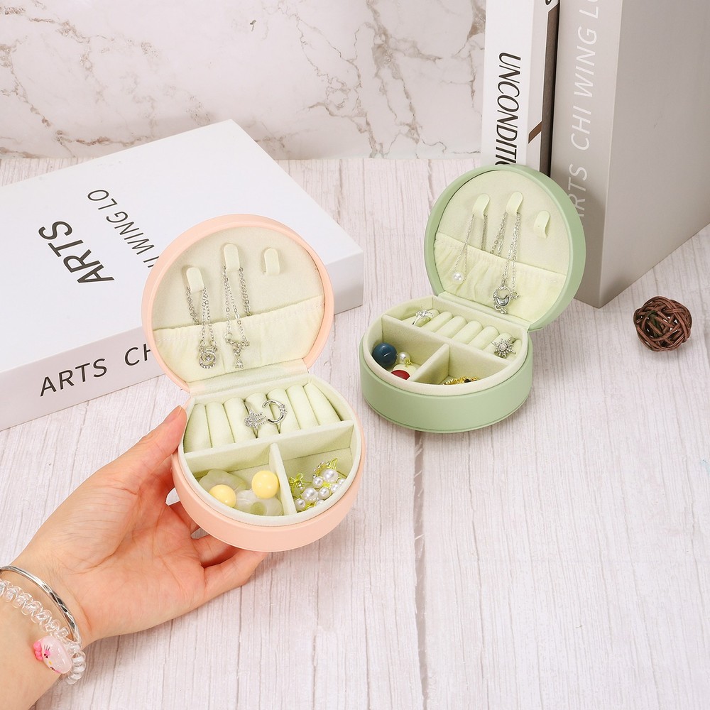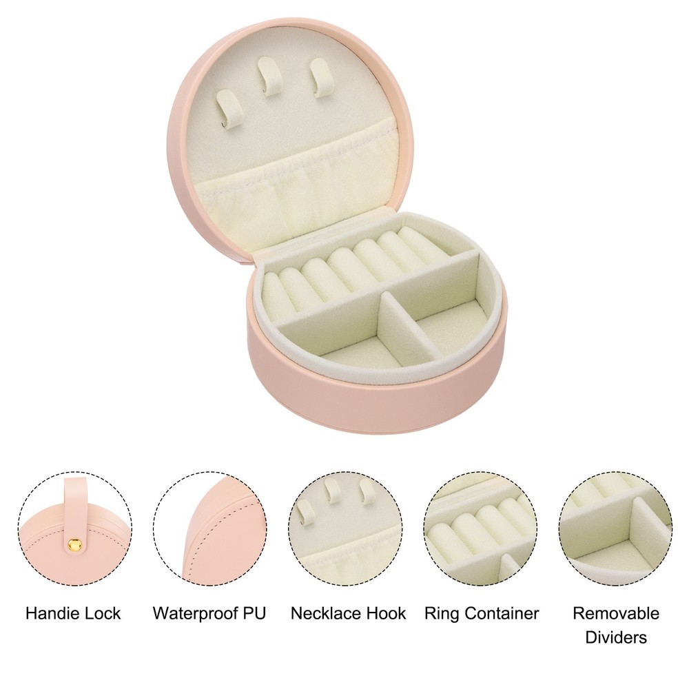 2 Pcs Pink Leather Travel Jewelry Organizer Box Case