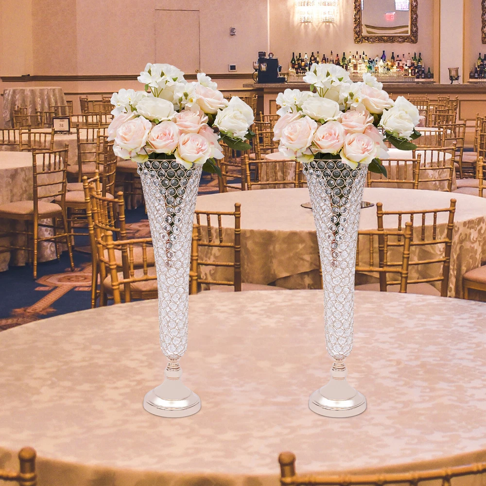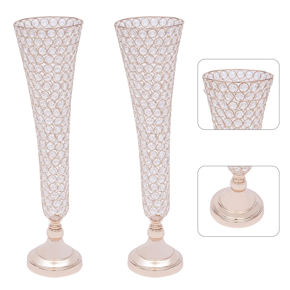 2 Pcs Silver / Gold Wedding Table Crystal Flower Stand For Birthday Event Decor Description This vase is perfect for young newlyweds with personality and fashion, placed in the wedding venue to highlight the sense of fashion and art in the entire interior. Light gently sprinkles on the vase, and a burst of soft light makes the whole wedding scene more noble and elegant, adding a touch of festive and happy atmosphere to the wedding. Specification Shape: Trumpet Style: Modern Material: Iron Surface Treatment: Electroplating Treatment Number of Pieces: 2 Use Form: Desktop, Floor-standing Product Height: 53cm/ 20.86in Opening Diameter: 17cm/ 6.69in Base Diameter: 13.5cm/ 5.31in Package Size: 49*19*25cm/ 20*7.5*10in Net Weight: 4.5kg/9.9lbs Gross Weight: 5kg/11.0lbs Welcome 2 Pcs Silver / Gold Wedding Table Crystal Flower Stand For Birthday Event Decor Description This vase is perfect for young newlyweds with personality and fashion, placed in the wedding venue to highlight the sense of fashion and art in the entire interior. Light gently sprinkles on the vase, and a burst of soft light makes the whole wedding scene more noble and elegant, adding a touch of festive and happy atmosphere to the wedding. Key Features Modern and Elegant : Each crystal trumpet floral vase is made of selected high-quality octagonal crystal beads. They still sparkle in the sunlight. It creates stunning colors and shades and is the ideal candelabra centerpiece wedding decoration. Premium Quality : It is made of high-quality iron material with an electroplated surface, so it has good weather resistance . It will not change its performance or shorten its service life due to the harsh environment. DIY Fun: You can put different decorations on the vase for different occasions, such as artificial flowers, fresh flowers, bouquets, feathers, etc to create your own decorations with endless imagination and elegant taste . Easy to Clean: Its electroplated smooth surface and highly clear crystal make it easier to clean. You just need to wipe it with a soft dry cloth to make it look new. Light Weight: These vases are moderate in weight (9.9lbs), allowing you to easily move to where you want to place them. Easy to Assemble: It's simple to construct and the package contains the parts needed for installation, so you only need a few simple steps to put them together. Two in a Package : The package comes with two vases that can be placed symmetrically exactly where you want them. Therefore, you don't need to buy extra, which is very affordable and convenient. Customer Service: We aim to provide quality products and services. If you have any problems, please feel free to contact us. We will reply and solve the problem for you as soon as possible. Specification Color: Silver / Gold Shape: Trumpet Style: Modern Material: Iron Surface Treatment: Electroplating Treatment Number of Pieces: 2 Use Form: Desktop, Floor-standing Product Height: 53cm/ 20.86in Opening Diameter: 17cm/ 6.69in Base Diameter: 13.5cm/ 5.31in Package Size: 49*19*25cm/ 20*7.5*10in Net Weight: 4.5kg/9.9lbs Gross Weight: 5kg/11.0lbs Package Included 2* Flare-shaped Vase Bodies 2* Bases 3* Non-slip Mats Other Accessories for Assembly Details Trumpet-shaped Opening : The mouth of the trumpet-shaped vase is propped outward with a lot of placement space, even a bouquet with larger petals like lilies can be fitted in. Crystal Bead Splicing Design: The vase is made of several finely crafted crystal beads spliced together in a natural form with a clear visible pattern. Round Base: The enlarged round base (5.31in) design makes it stable and not easy to shake and tip over. Application It can be used in everyday decoration for the kitchen, living room, bedroom, office, balcony, etc. It can also add sparkle to your wedding banquets, proms, baby showers, anniversaries, Valentine's Day and other important events. Installation 1. Connect the tooth bar with the accessories. 2. Fix the base with nuts. Notes Please note that the flowers in the picture are not included. Please allow the slight color difference caused by the shooting light and 1-3 cm error due to manual measurement, and make sure you do not mind before ordering. Payment Delivery details Terms of sales About us Contact us Payment We accept ebay payment 。 Fees such as import duties, taxes are not included in the item price or shipping costs. These charges are the buyer's responsibility. Delivery details Shipping: 2-9 working days to: USA Terms of sales We maintain high standards of excellence and strive for hundred percent customer satisfaction. Feedback is very important to us. We hope that you contact us immediately before you give neutral or negative feedback, so that we can address your concerns. It is impossible to address issues if we do not know about them! About us Your satis faction is our ultimate goal. We work hard to earn your trust and future business. Our certified technicians have tested each item before shipping. The unit comes with 1 year limited warranty on all manufacturing defects. a) If you receive a defective item, you may return it or ask for a discount. Please contact us within 14 days after you receive the package. b) What you returned must be intact and in its original packaging as re? u. Customer is responsible for shipping costs of the returned item. c) We will cover the cost of shipping back t with the shipping rate indicated in the registration page. We will send you a new unit or refund the full payment you paid. Thank you. Contact us Business Hour Business Hour: Monday To Friday: 8:30 AM to 5:00 PM (Beijing China time) Due to time zones, our reply to your questions may not be immediately. But within above working time, we will reply your email within 24 hours. If it's non-workdays, please kindly be patient and wait till Monday. Please contact us with ebay message. Please feel free to contact us if you have any questions. Monday To Friday: 8:30 AM to 5:00 PM (Beijing China time) Due to time z