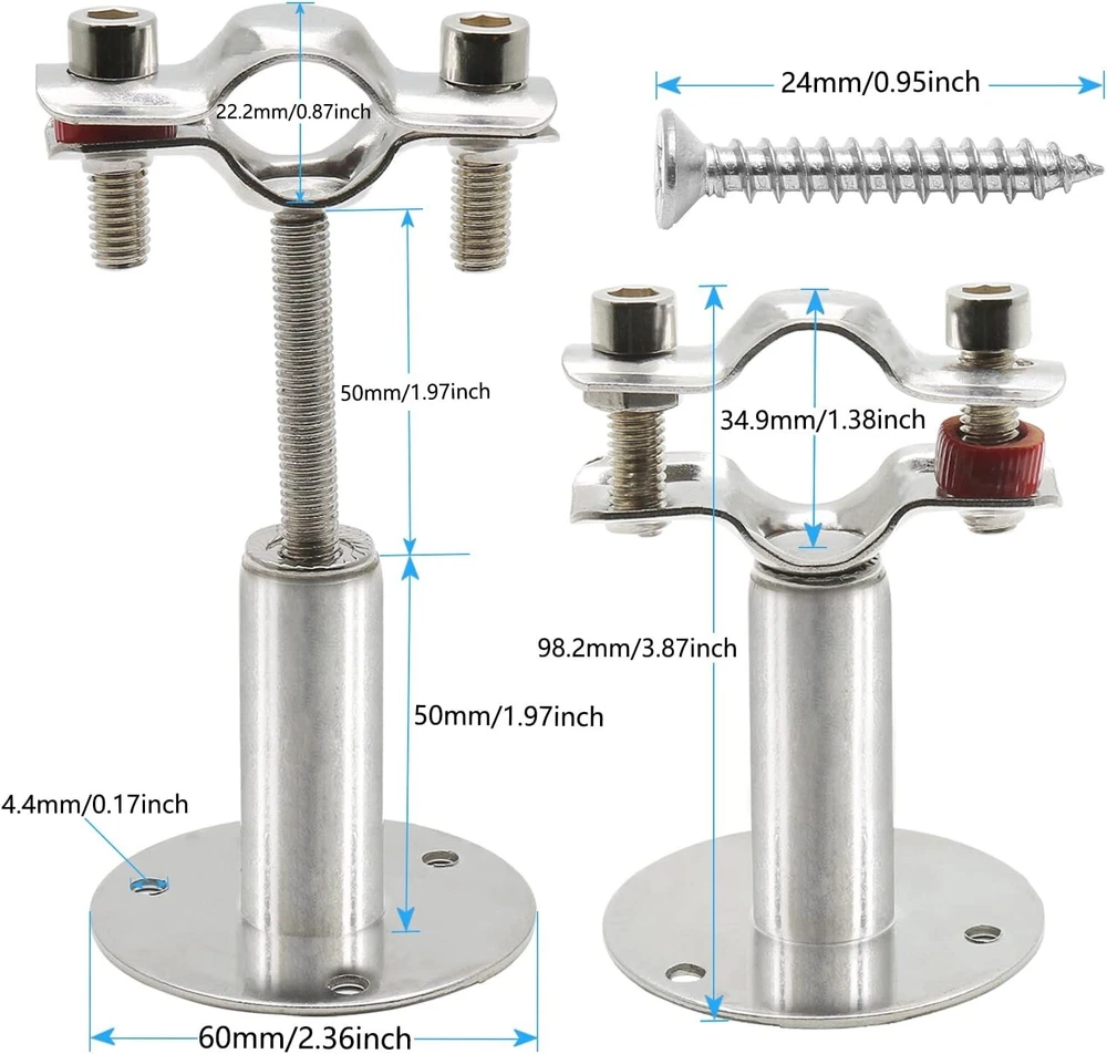 WHAT WILL YOU GET - You will get 2 pcs wall mount ceiling mount pipe support. The height of the bracket can be adjusted from 50 mm to 100 mm. Pipe support clamp is suitable for pipes with a diameter of 25mm-27mm (3/4inch). At the same time, we have equipped you with 6 screws, screw size is 24mm/0.95inch, 6 mounting anchors and a small hexagon wrench. GOOD QUALITY BRACKET - The adjustable pipe support is made of 304 stainless steel. It is wear-resistant and anti-rust. The pipe ceiling bracket is manufactured with excellent production technology, the thread is clear and smooth, the service life is long. MULTIPLE USE - The adjustable pipe bracket adopts wall-mounted or ceiling-mounted installation and is specially designed for fixing pipes, tubes or rods. At the same time, you can also use pipe support bracket for DIY projects. EASY TO INSTALL - The installation is very simple and fast. We provide you with screws and hexagon wrench that match the ceiling pipe strap. You only need to choose the place where you need to install, and then use hexagon wrench and screwdriver to install it.